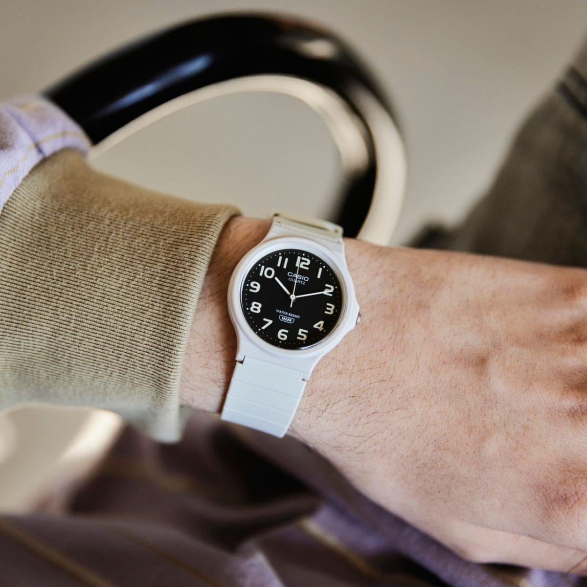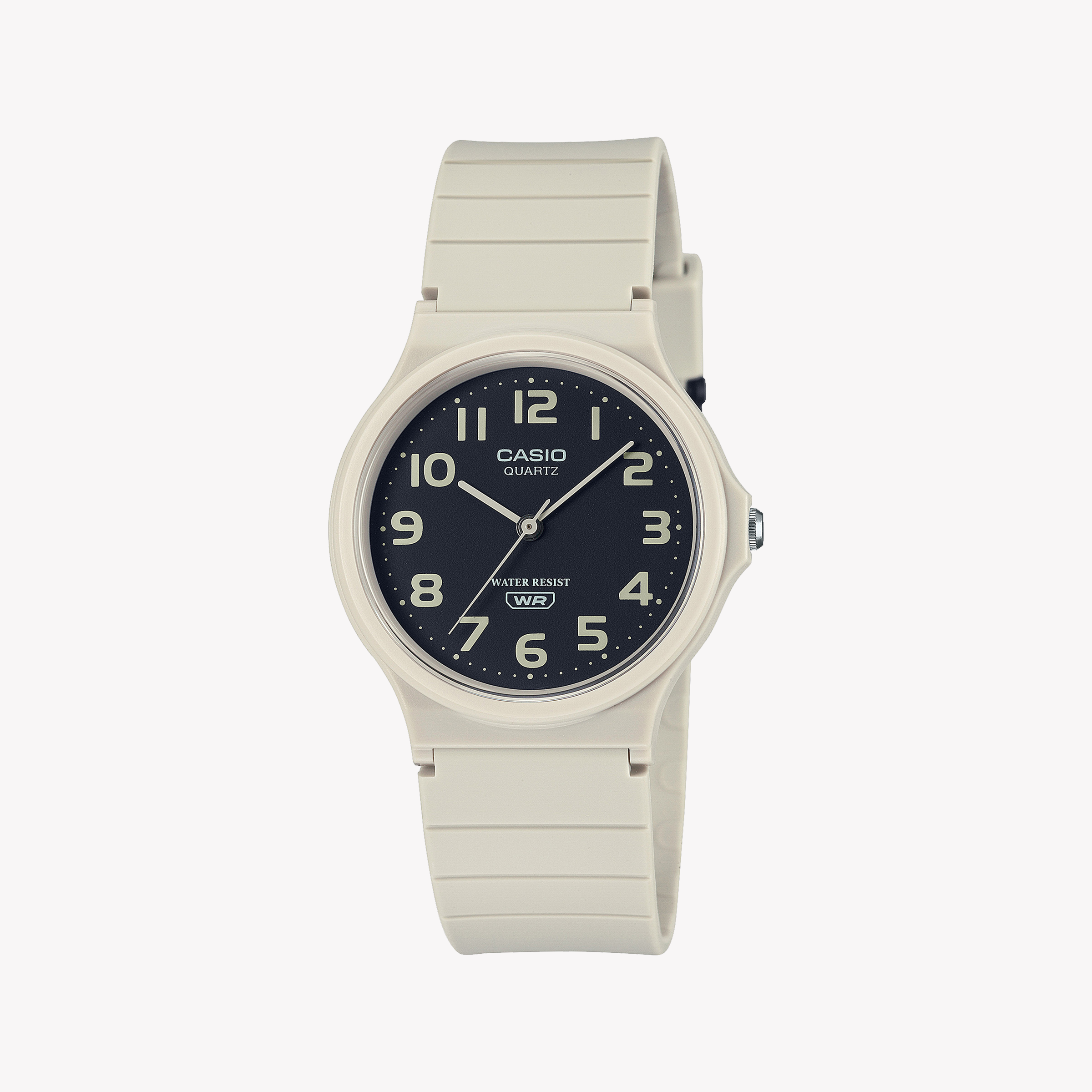 CASIO MQ-24UC-8BDF ADVENTURE READY - ساعة رياضية أنيقة للجنسين مع هيكل من الراتنج الأبيض وقرص أسود غامق