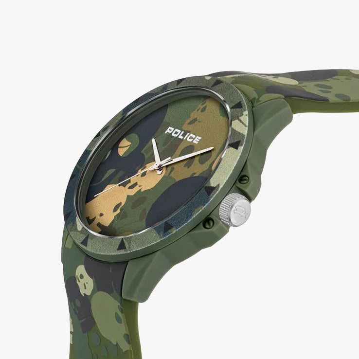 POLICE PEWUM2119563 - ساعة عصرية رياضية أنيقة للرجال مع شريط مطاطي أخضر وحزام متعدد الألوان