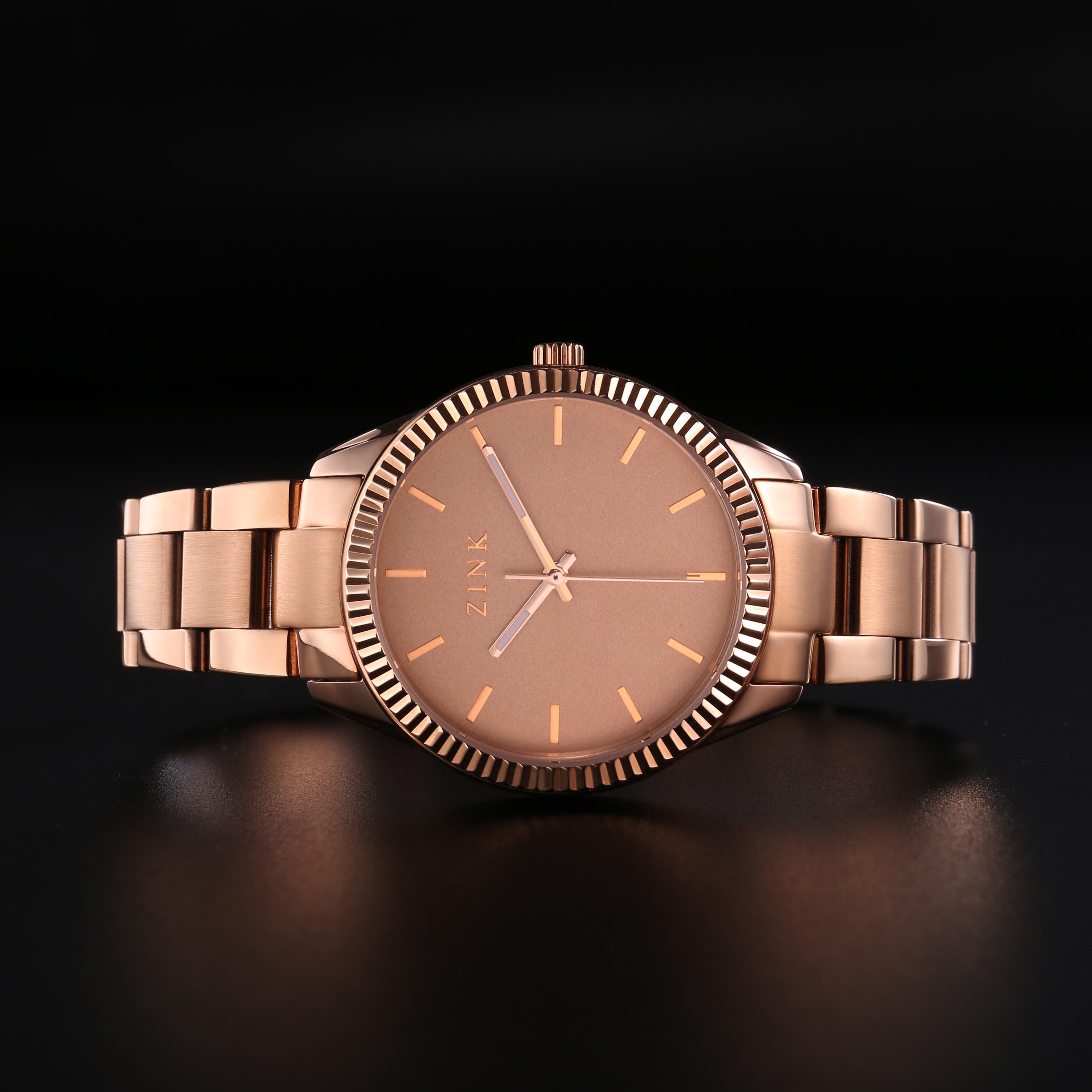 ساعة ZINK للسيدات بهيكل من الستانلس ستيل باللون الذهبي الوردي وسوار من الستانلس ستيل باللون الذهبي الوردي