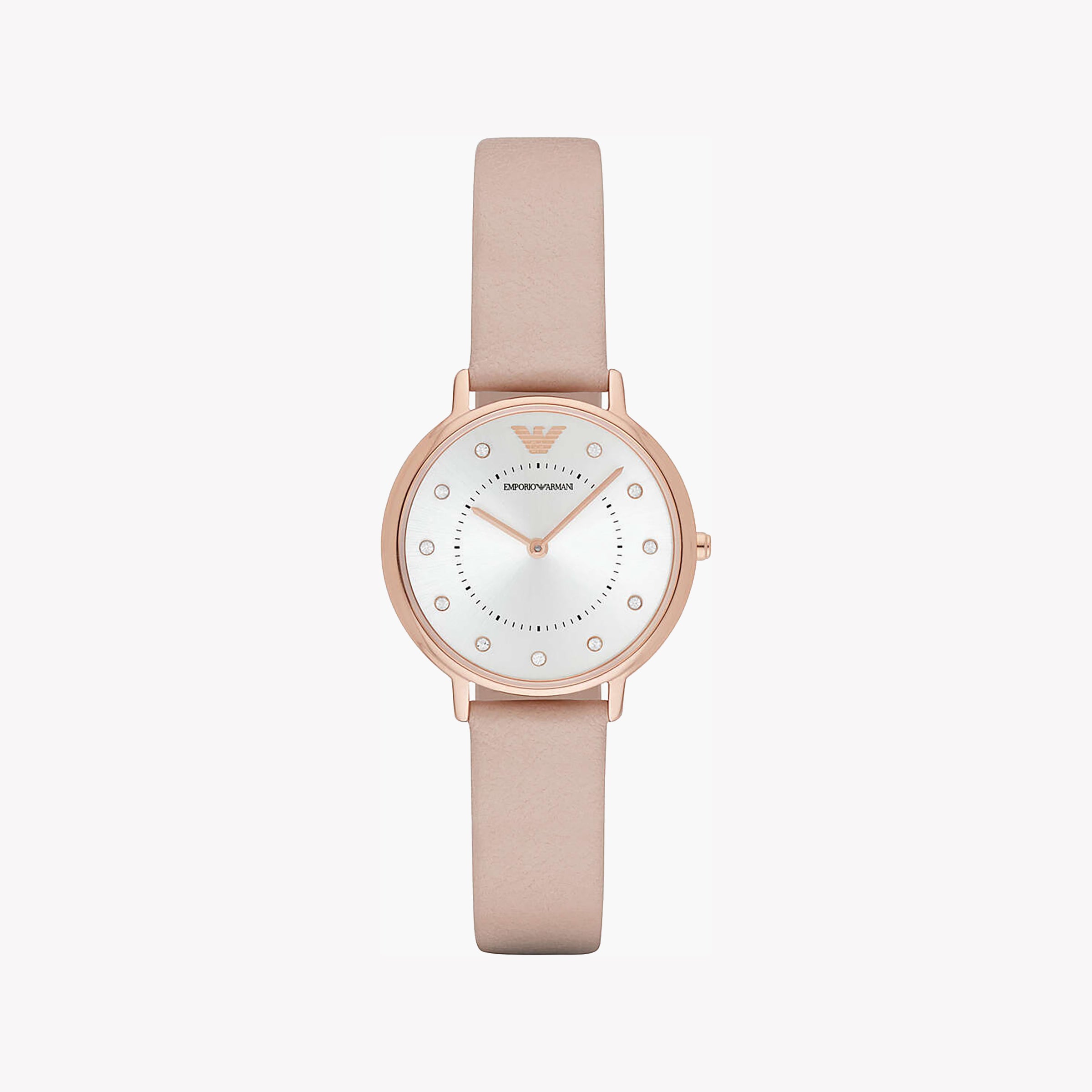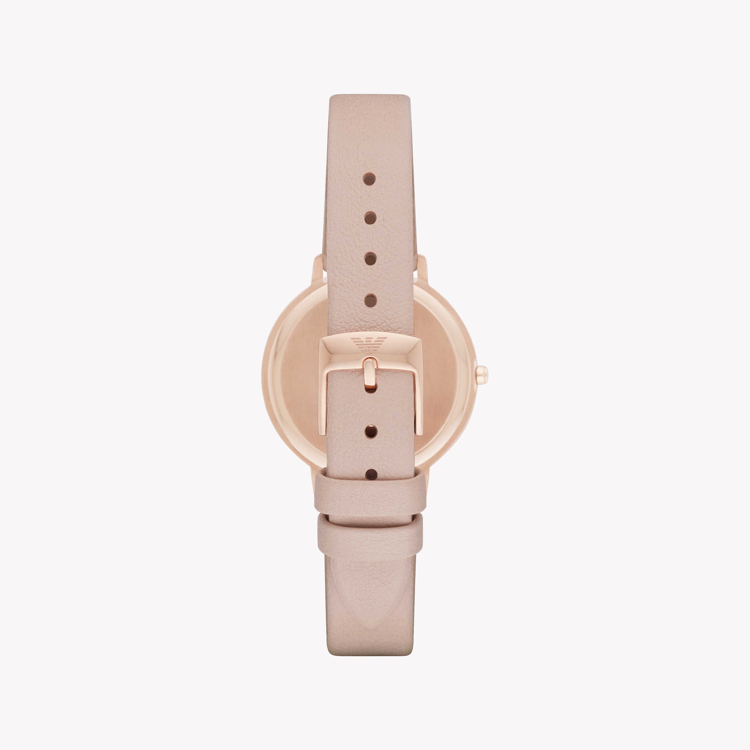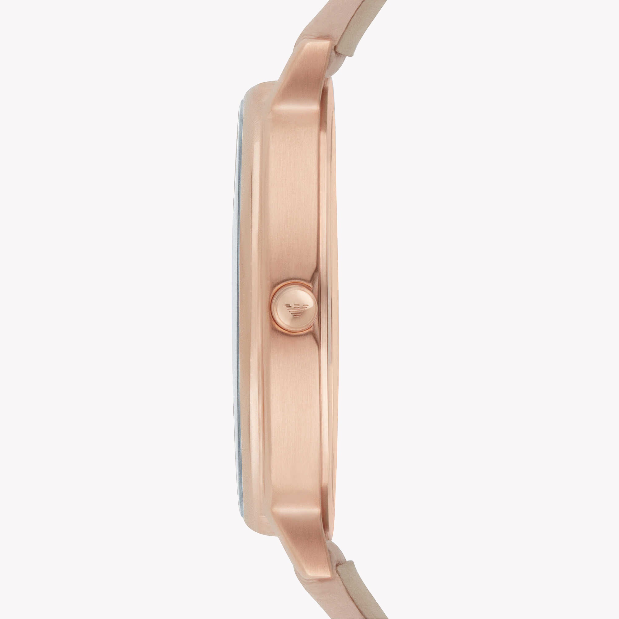 ساعة إمبوريو أرماني AR2510 باللون الذهبي الوردي مع سوار من الجلد البيج
