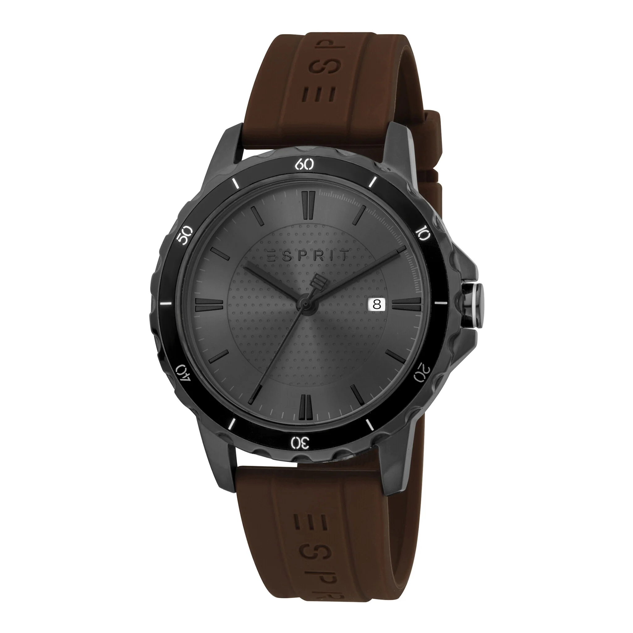 ساعة ESPRIT للرجال الكلاسيكية - ميناء أسود أنيق وحزام مطاطي بني