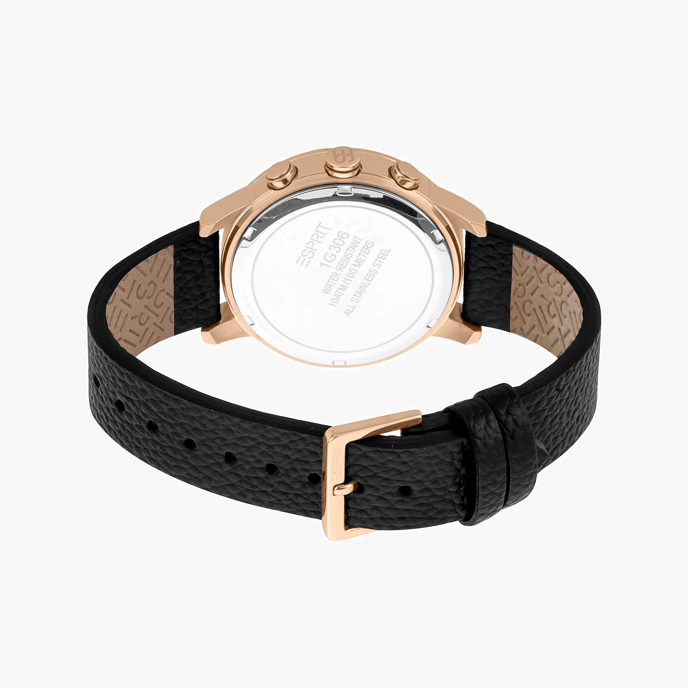 ارفع أناقتك مع ساعة Esprit الرجالية، التي تتميز بسوار جلدي أسود أنيق وميناء فضي خالد. مصنوعة من الفولاذ المقاوم للصدأ المتين، وتجمع علبتها المستديرة المصنوعة من الذهب الوردي (قطرها 42 ملم) بين الرقي والموثوقية. مثالية لأي مناسبة، هذه الساعة هي إكسسوار يجب اقتناؤه للرجل العصري. مقاومة للماء حتى 10 ATM.