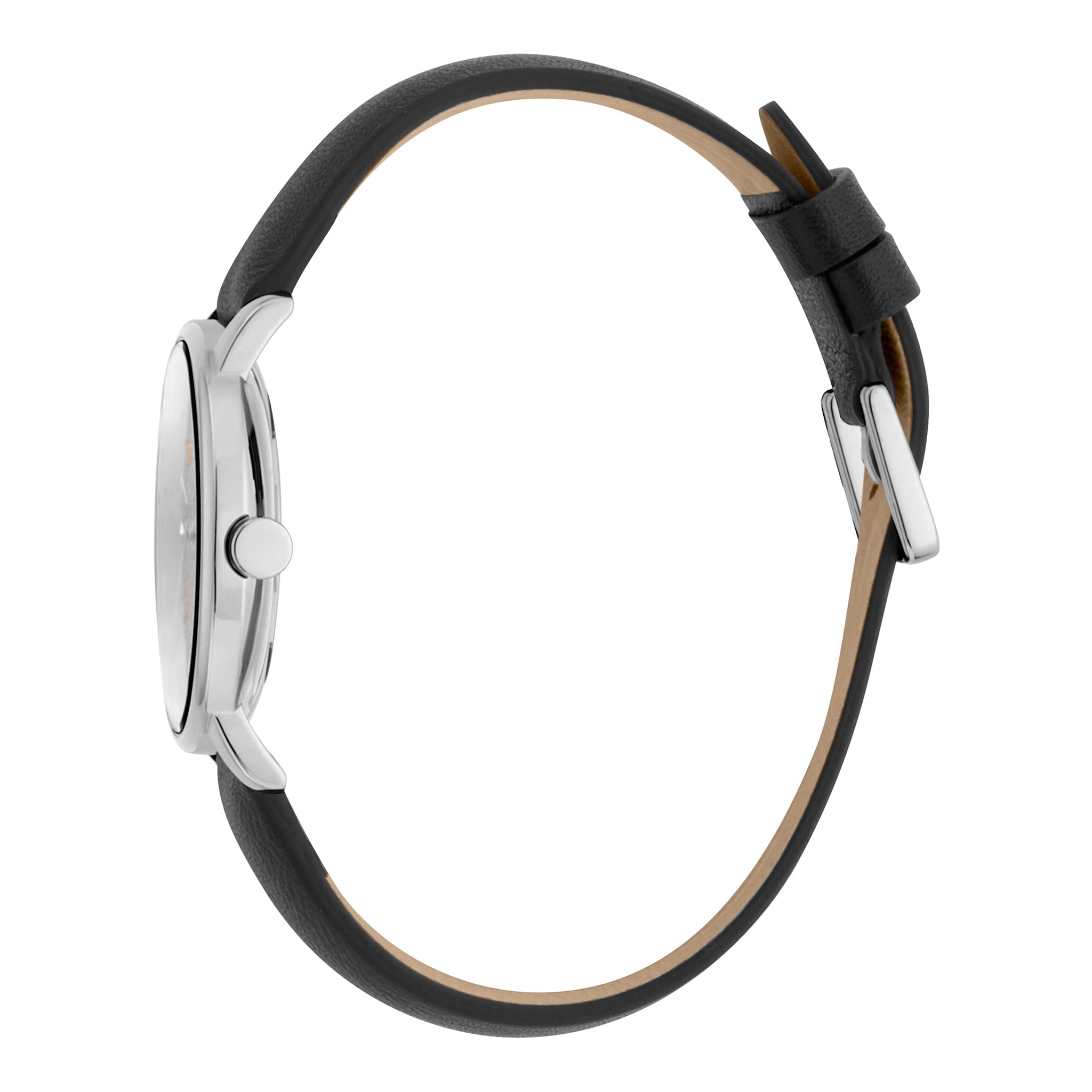 ساعة ESPRIT للسيدات بهيكل فضي من الستانلس ستيل وسوار جلد أسود