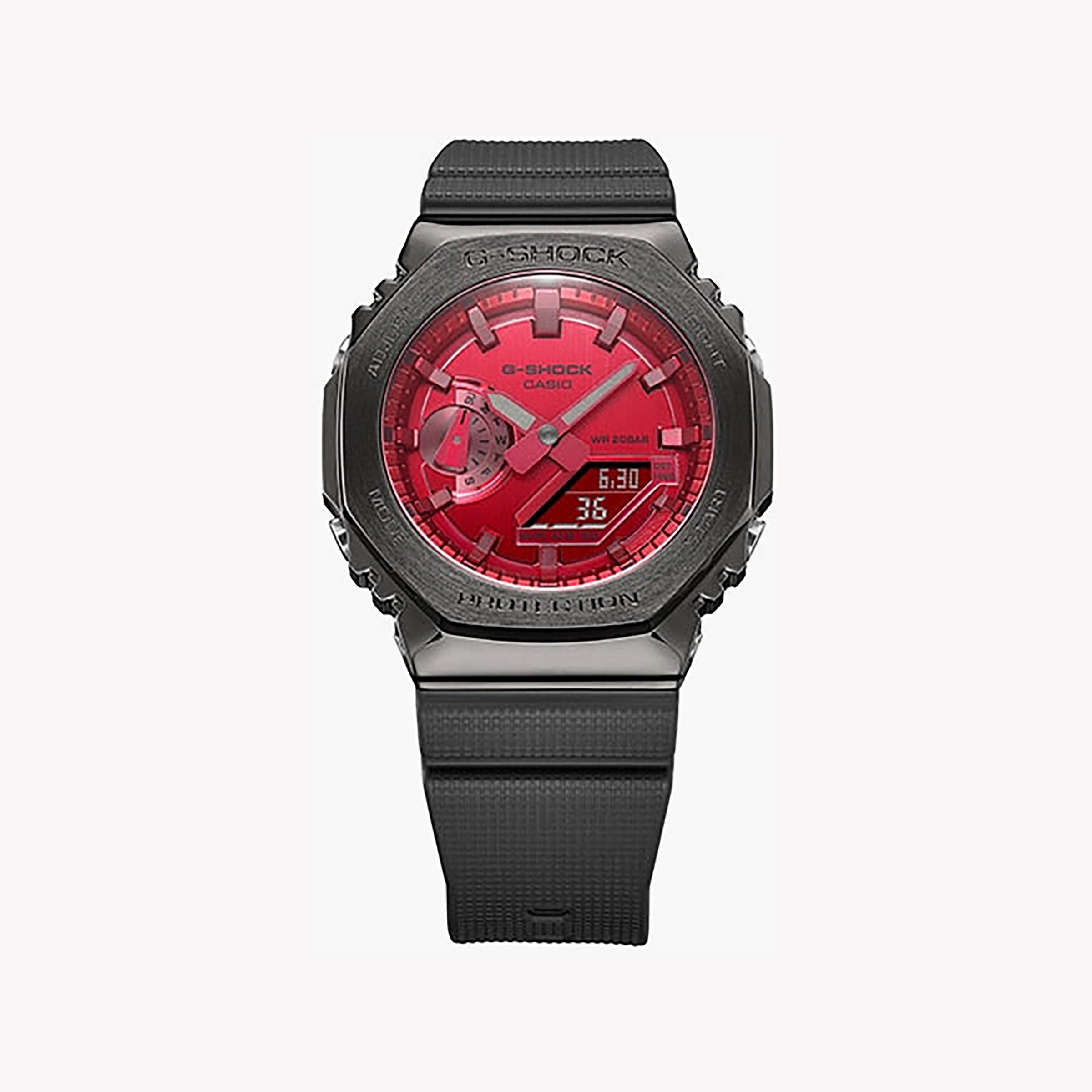 ساعة كاسيو جي شوك GM-2100B-4ADR BOLD SPORTY ELEGANCE - ساعة رجالية بسوار راتنج رمادي وميناء أحمر