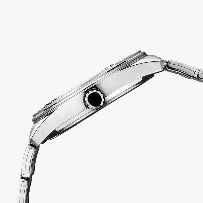 - بناء متين: مصنوعة من الفولاذ المقاوم للصدأ عالي الجودة، توفر كل من العلبة والسوار متانة استثنائية، مما يضمن بقاء هذه الساعة قوية وتحافظ على مظهرها اللامع على مر الزمن.