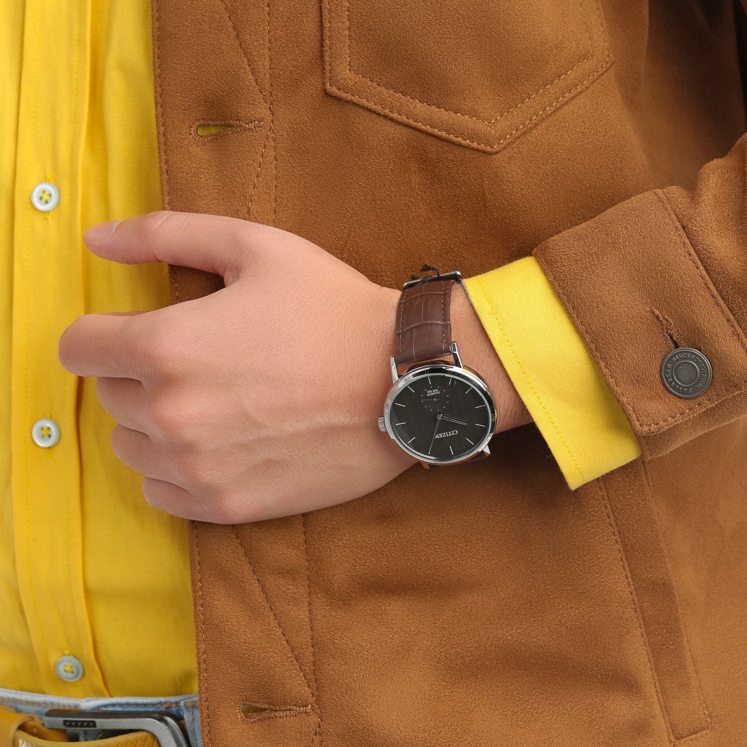 سيتيزن BE9170-13H: ساعة رجالية أنيقة من جلد العجل باللون البني مع علبة من الستانلس ستيل