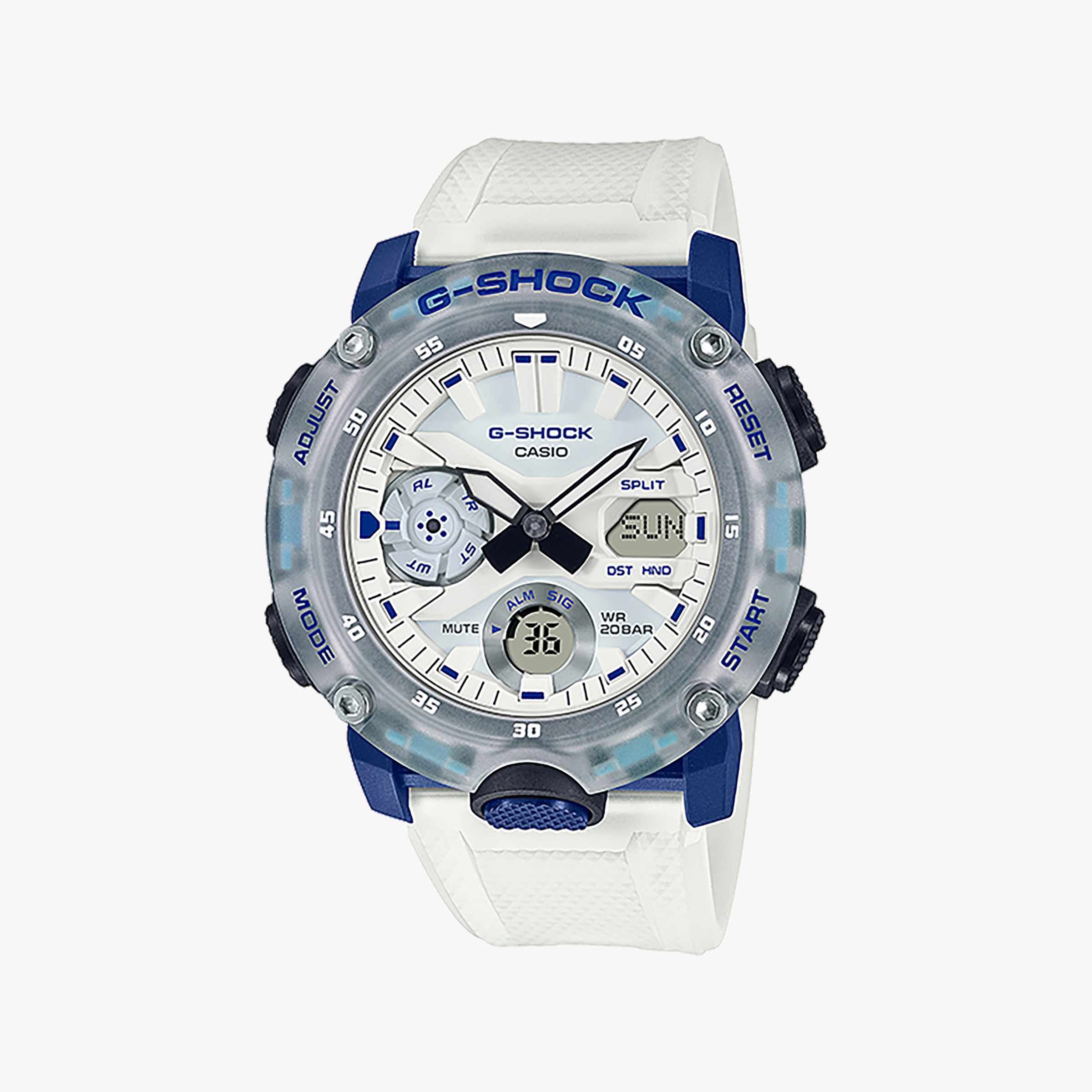 ساعة كاسيو جي شوك GA-2000HC-7ADR - ساعة رجالية أنيقة مع سوار من الراتنج الأبيض الأنيق وميزات متعددة الاستخدامات