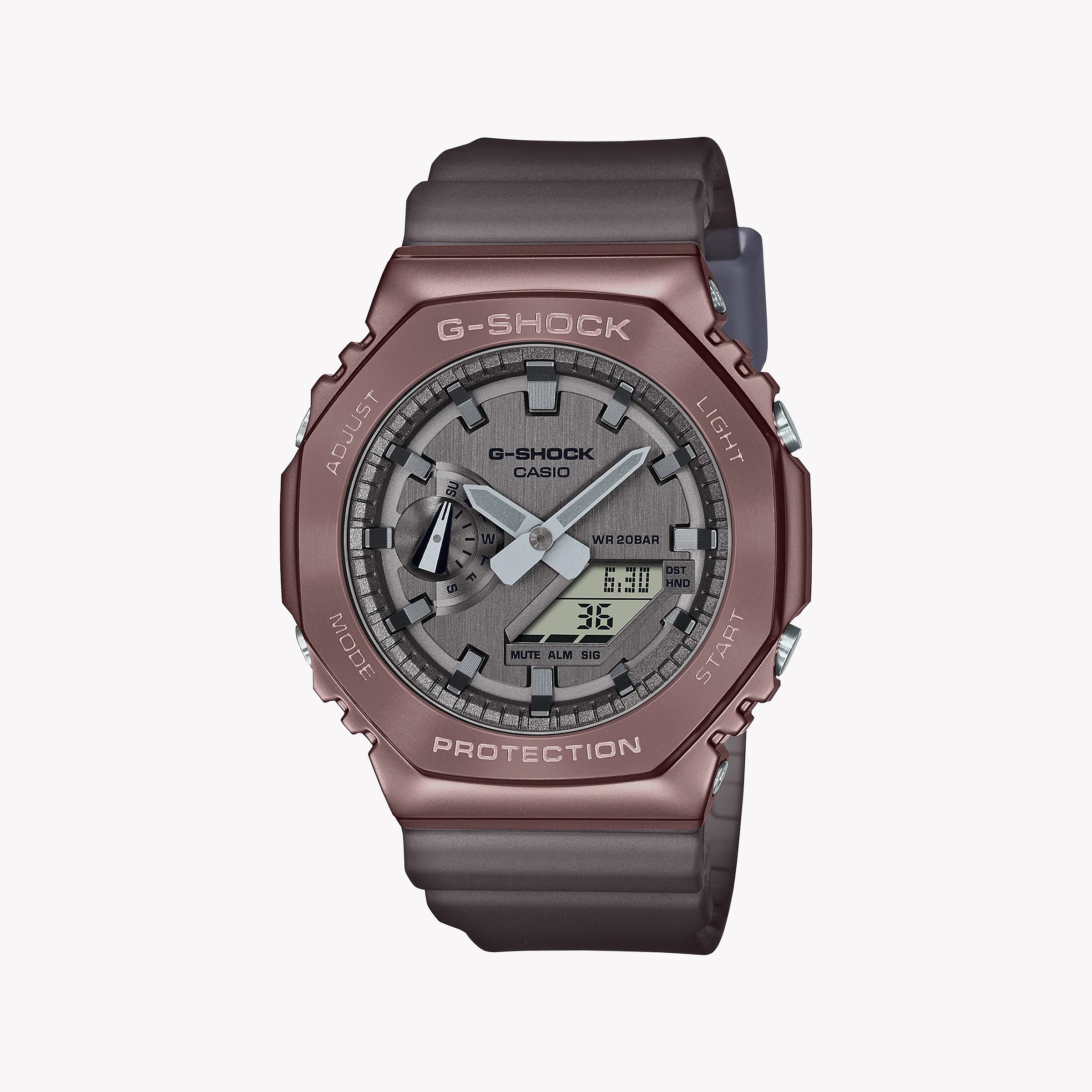 Make a statement with the GM-2100MF-5ADR G-SHOCK. This stylish, durable watch features a brown stainless steel case, 200m water resistance, and versatile functions for every adventure.