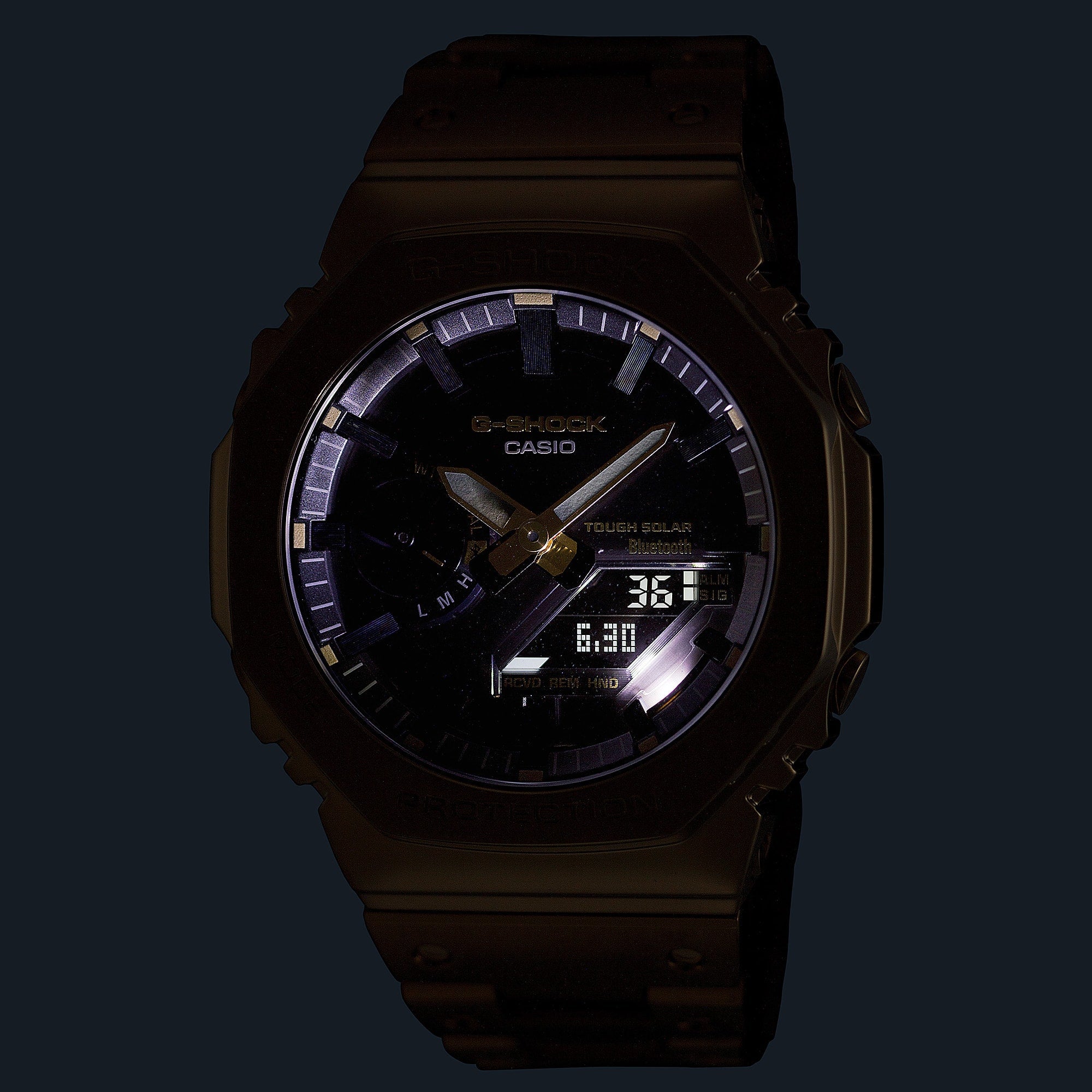 - دقة الوقت المتفوقة: تقدم ساعة GM-B2100GD-9ADR تقنية الاتصال عبر Bluetooth®، مما يسمح لها بالتزامن بسلاسة مع هاتفك الذكي لضمان دقة لا مثيل لها والتأكد من أنك دائمًا في الوقت المحدد.