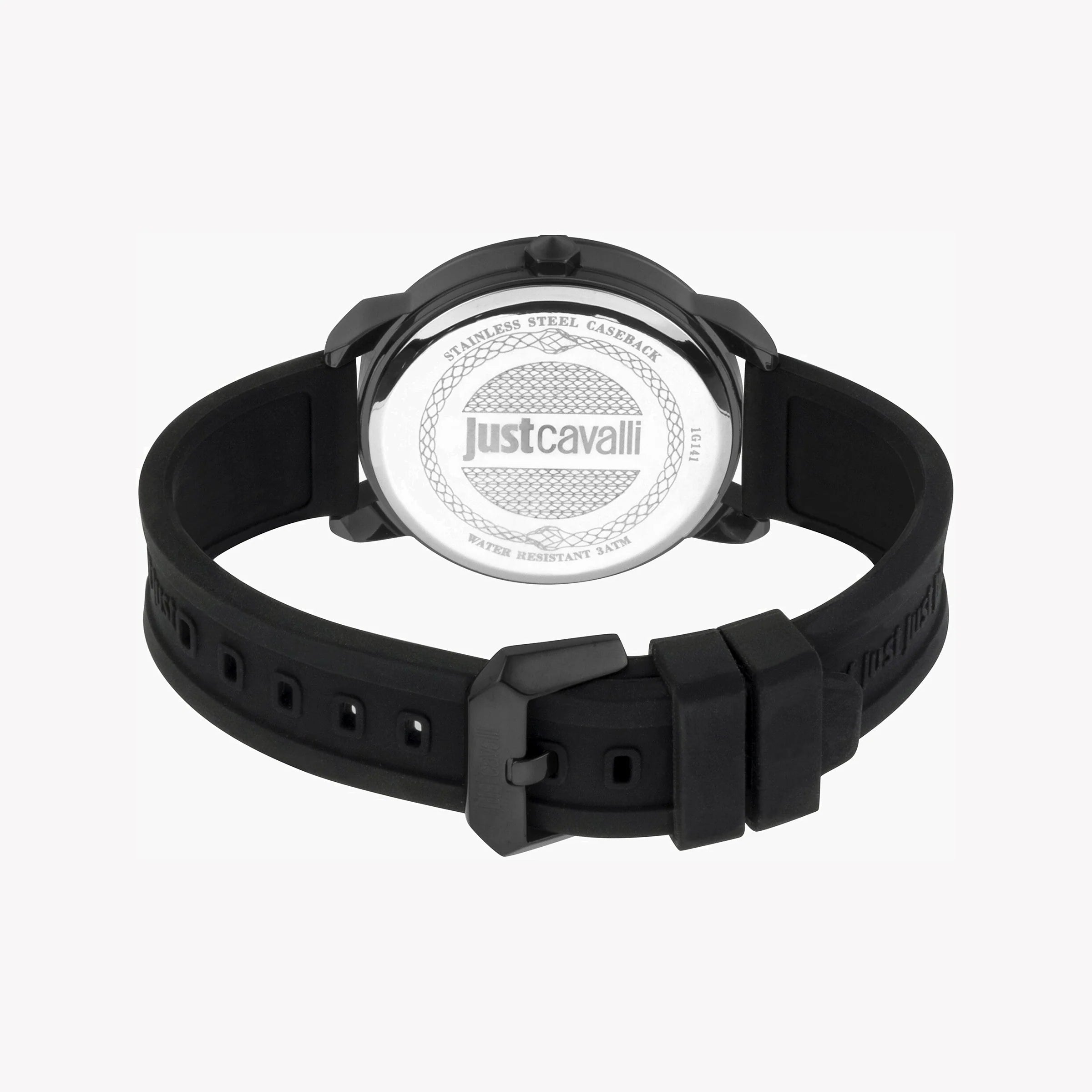JUST CAVALLI JC1G141P0045 ELITE BLACK - ساعة رجالية متطورة بسوار من السيليكون