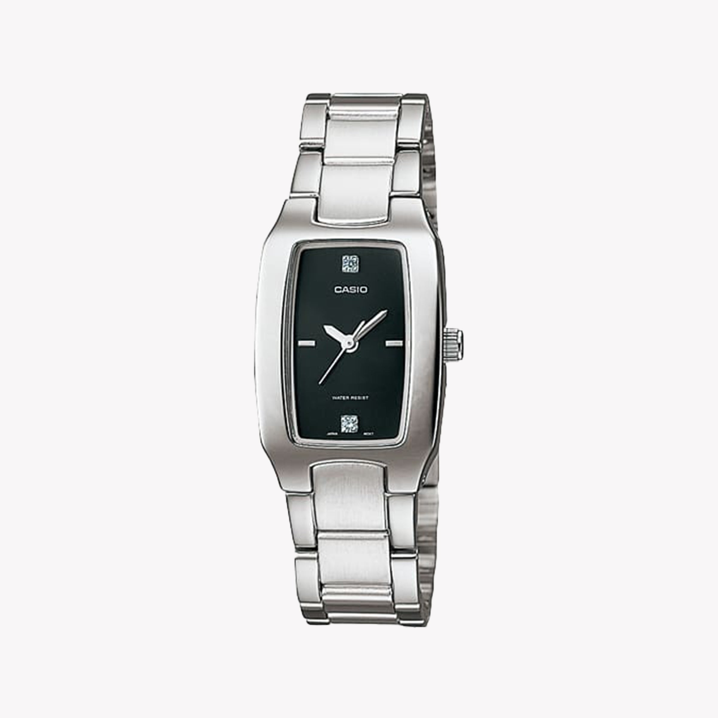 Shop the Casio LTP-1165A-1C2DF women's watch, featuring a sleek stainless steel design, reliable ±20 sec/month timekeeping, and 3-year battery life—perfect for any occasion.