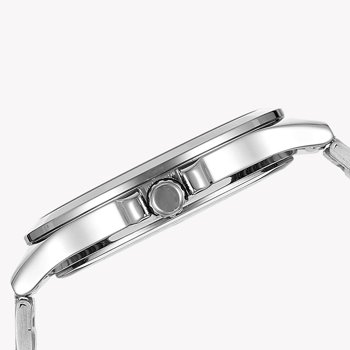 - تصميم رياضي ولكن كلاسيكي: تتميز بوجه أسود لافت مدمج داخل هيكل أنيق من الفولاذ المقاوم للصدأ بلون الفضة، تقدم هذه الساعة مظهراً م refined يبدو سلساً بين الإعدادات غير الرسمية والرسمية.