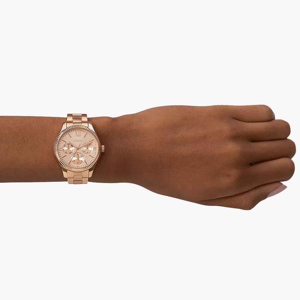 ساعة فوسيل BQ3691 باللون الذهبي الوردي - ساعة نسائية أنيقة وأنيقة