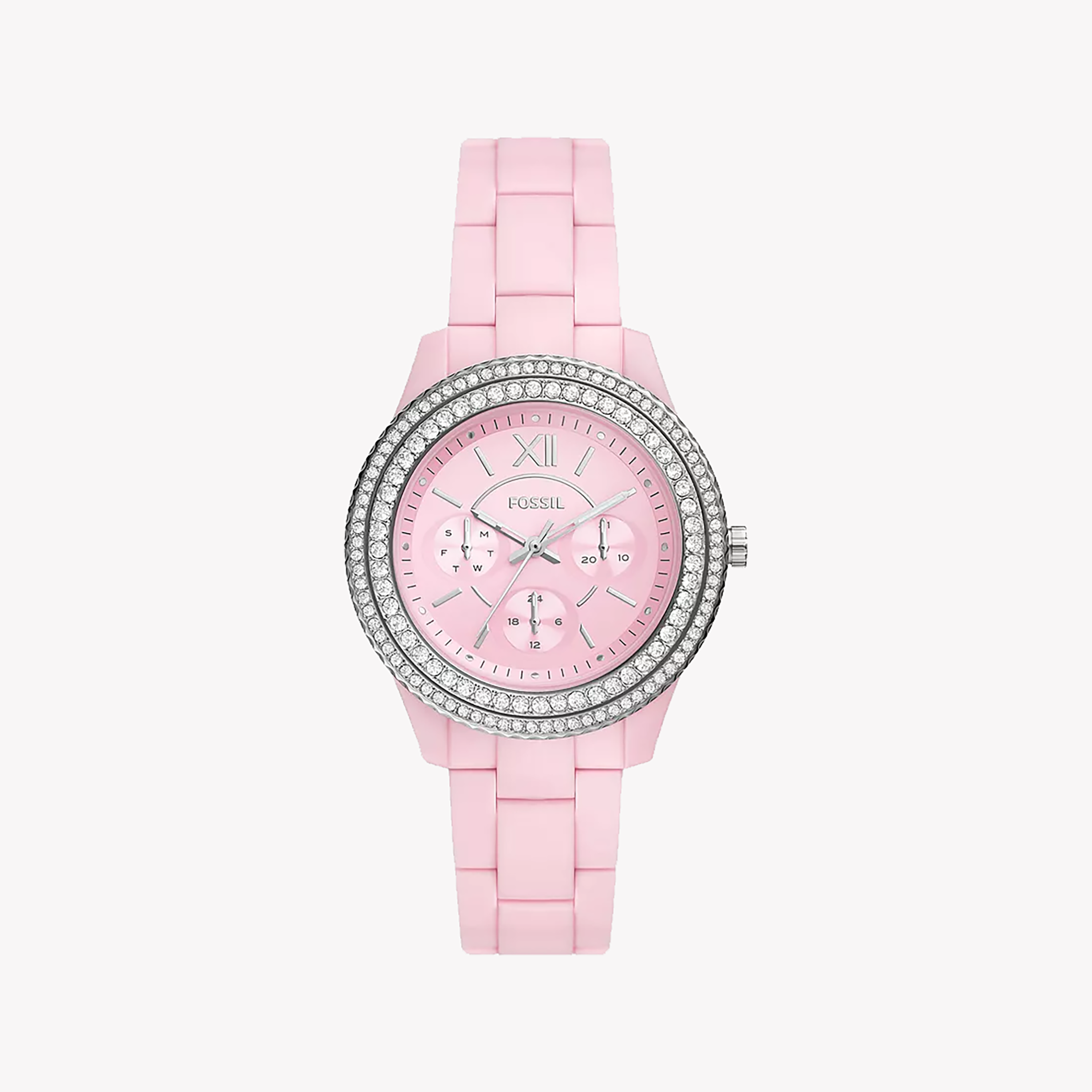 فوسيل ES5153 بينك إليجانس - ساعة نسائية أنيقة بسوار من الراتنج وحركة كوارتز