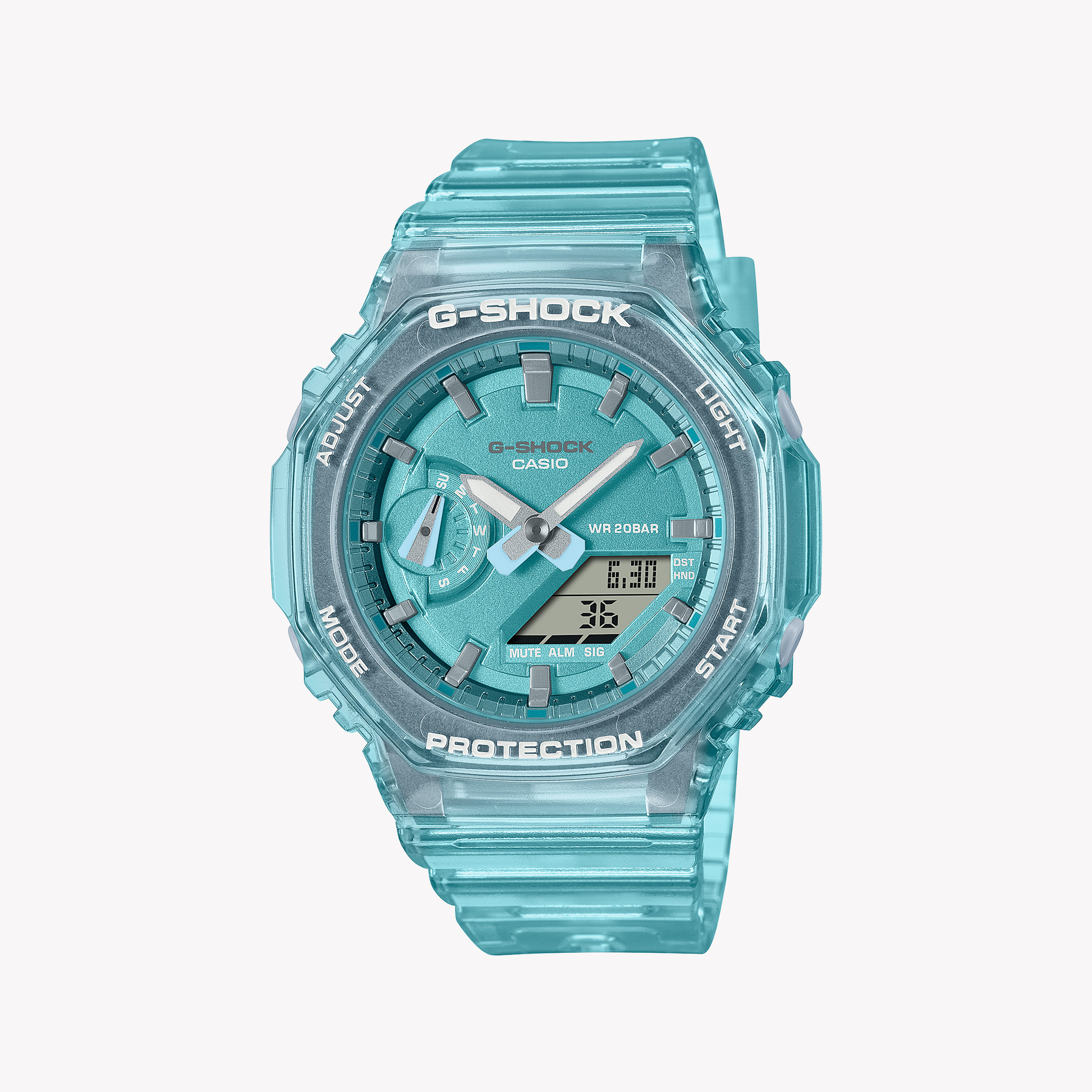 ساعة كاسيو جي شوك GMA-S2100SK-2ADR أوك دينامو - ساعة نسائية من الراتنج باللون الأزرق النابض بالحياة للأناقة والمغامرة