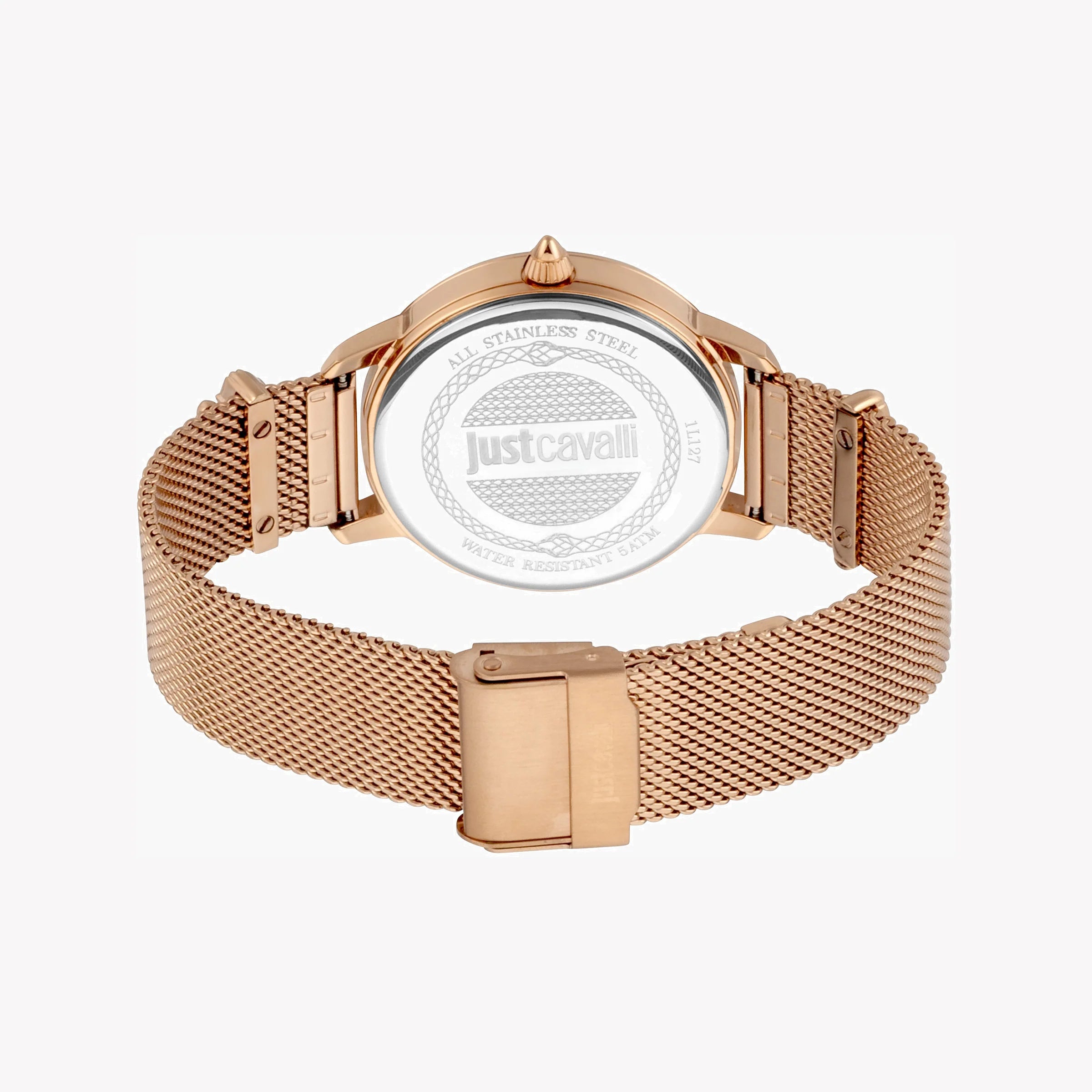خالدة، أنيقة، راقية. تتمتع هذه الساعة النسائية من Just Cavalli بكل هذه الصفات. من حزام الفولاذ المقاوم للصدأ باللون الذهبي الوردي إلى العلبة المستديرة من الفولاذ المقاوم للصدأ باللون الذهبي الوردي بقطر 38 مم وبالطبع الهيكل الأنيق 2T-BLU&S، تمثل هذه الساعة التمثيل الكامل للرقي الأسمى.