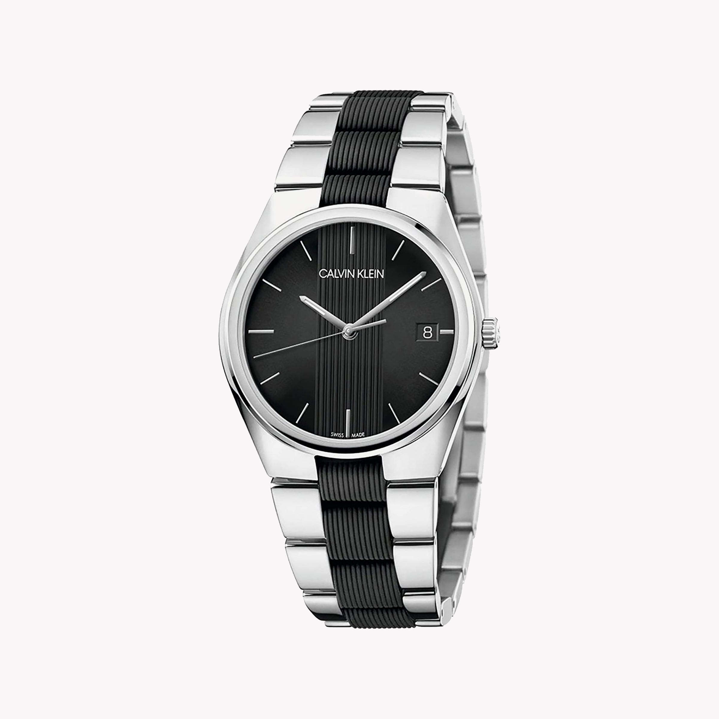 Discover the CK Calvin Klein K9E211B1, a watch designed for the modern man who values both style and functionality. With its sleek black dial and contrasting silver and black band, this timepiece is more than just a way to tell time; it's a statement of your bold personality. Whether you’re at the office or out on the town, this watch effortlessly complements any outfit.