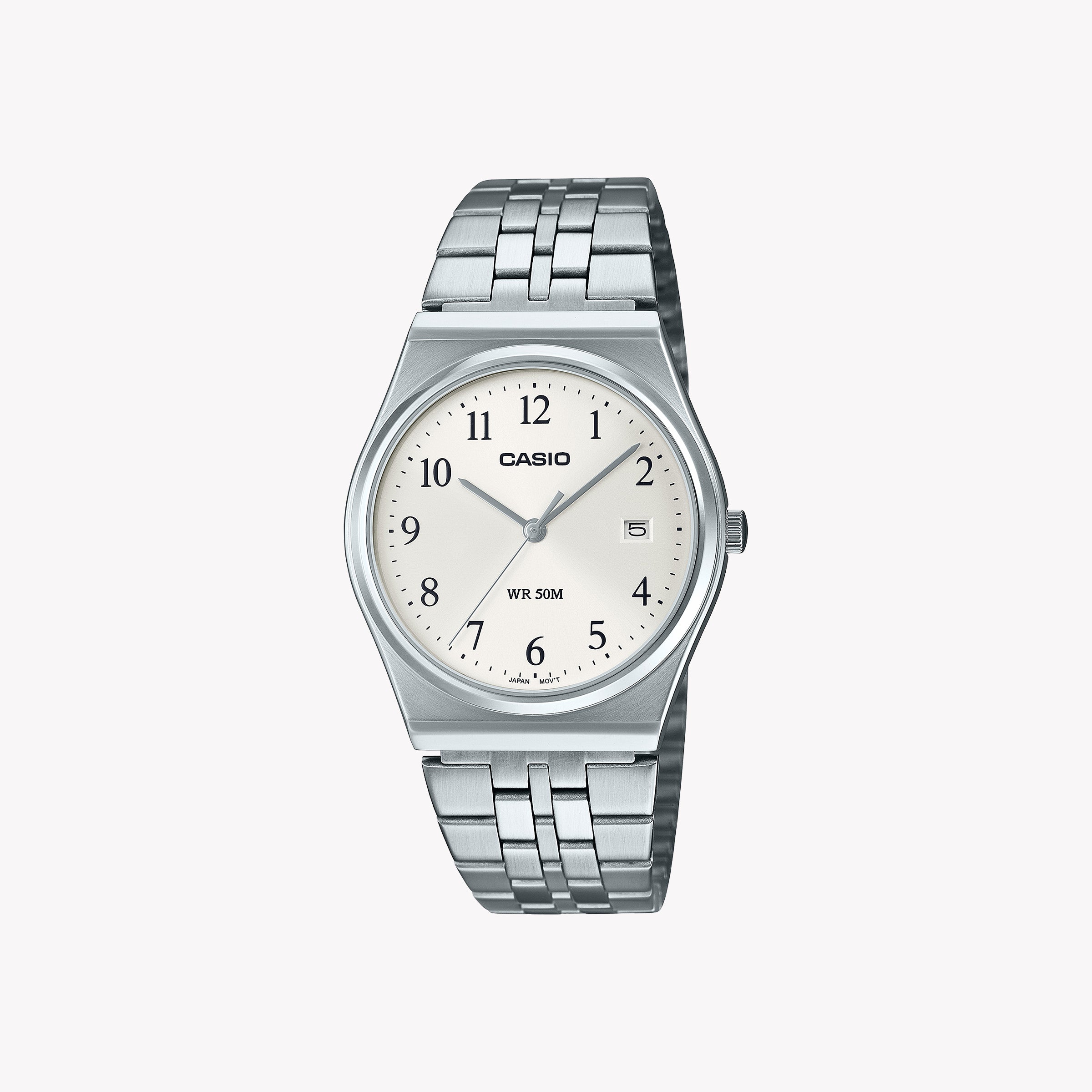 ساعة كاسيو MTP-B145D-7BV STYLISH RESILIENCE - للرجال من الستانلس ستيل ومينا باللون البيج