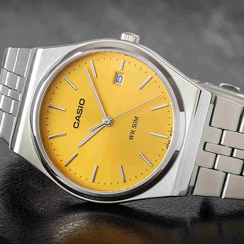 ساعة كاسيو MTP-B145D-9AV DYNAMIC STYLE - ساعة ستانلس ستيل بقرص أصفر نابض بالحياة