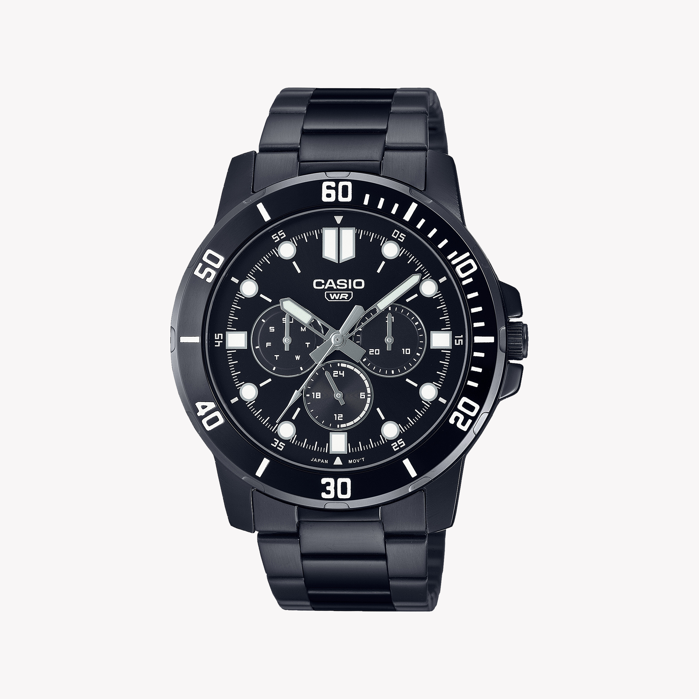 كاسيو MTP-VD300B-1E أداء جريء - ساعة رياضية للرجال من الستانلس ستيل بمينا أسود