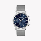 ساعة بوليس P15599JS03MM - ساعة رجالية أنيقة بسوار فضي من الستانلس ستيل ومينا زرقاء