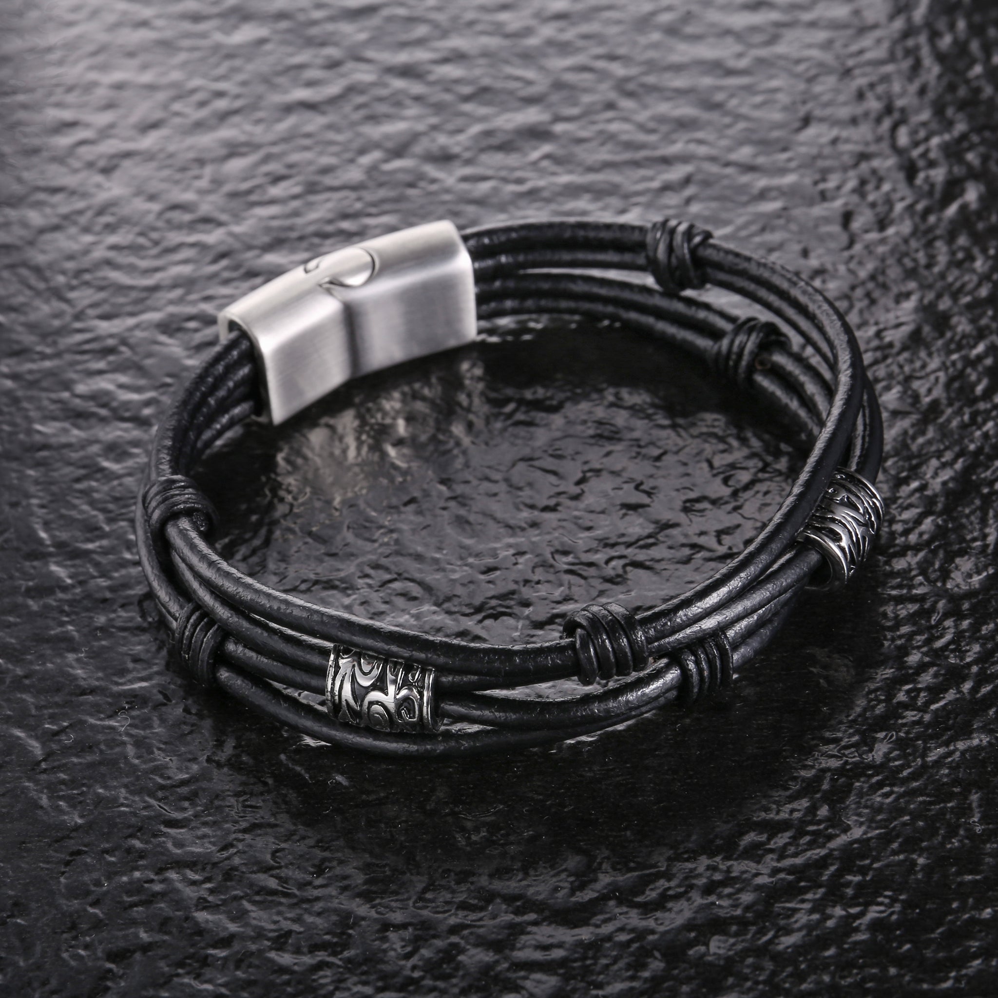 Zink Men's Black Stainless Steel & Leather Bracelet | Zjbc0422