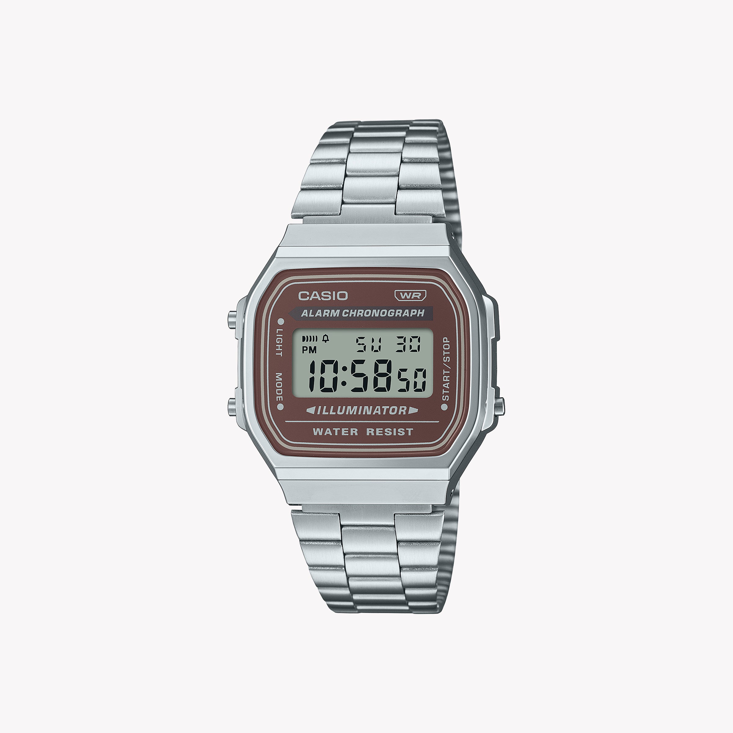 CASIO A168WA-5AY – VIELSEITIGES MEISTERWERK AUS METALL – Unisex-Digitaluhr mit elegantem Silberarmband und dynamischem Design