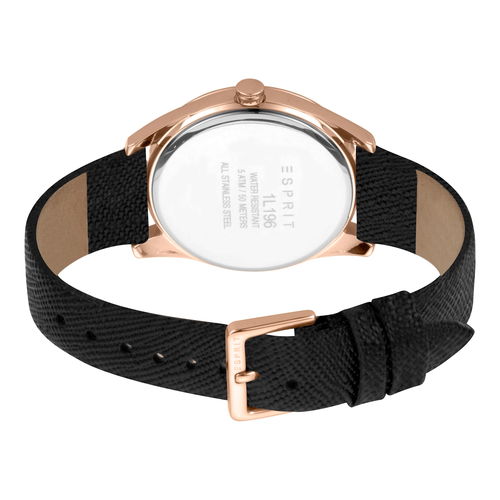 ESPRIT Damenuhr mit roségoldenem Edelstahlgehäuse und schwarzem Lederarmband