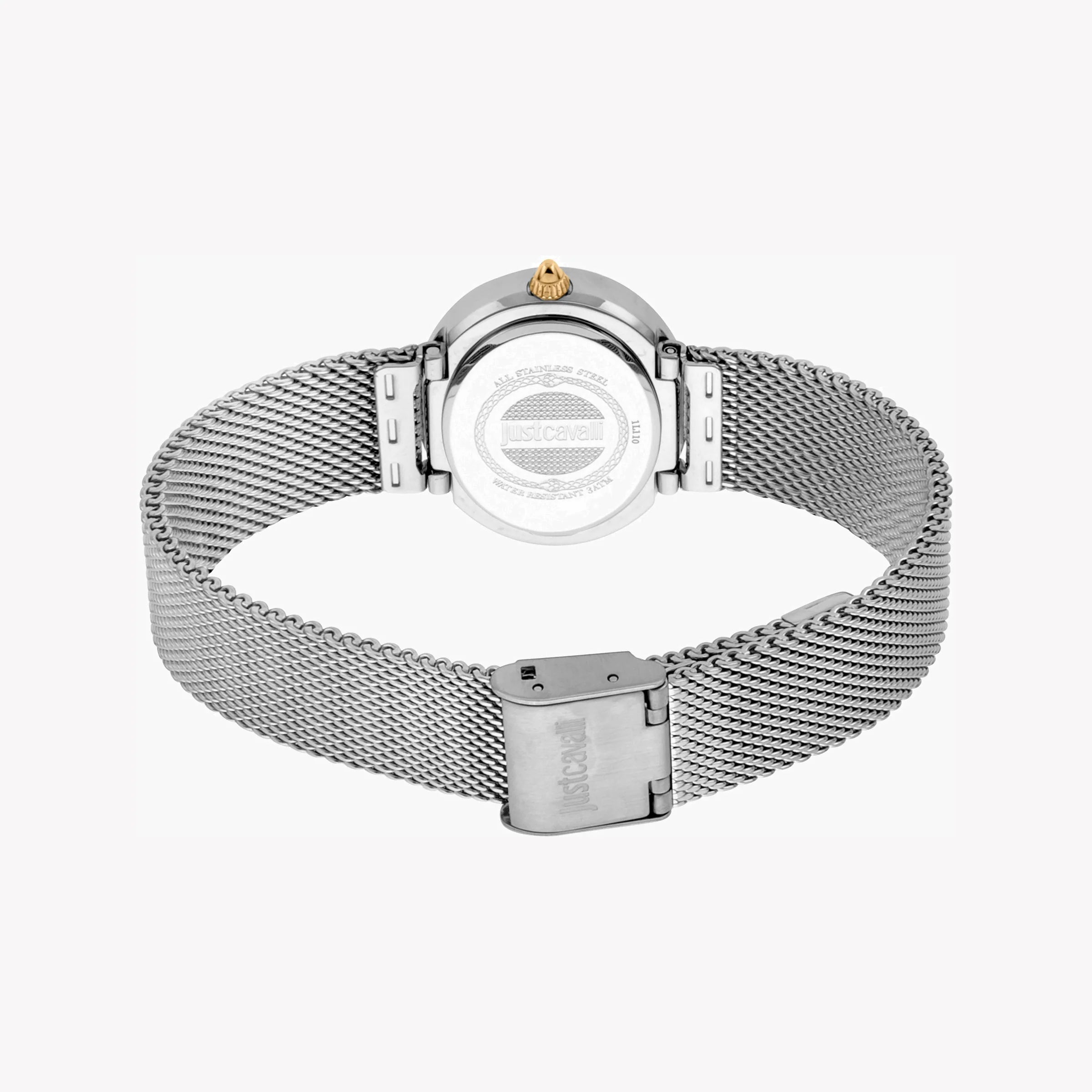 JUST CAVALLI Damenuhr mit silbernem Edelstahlgehäuse und silbernem Edelstahlarmband