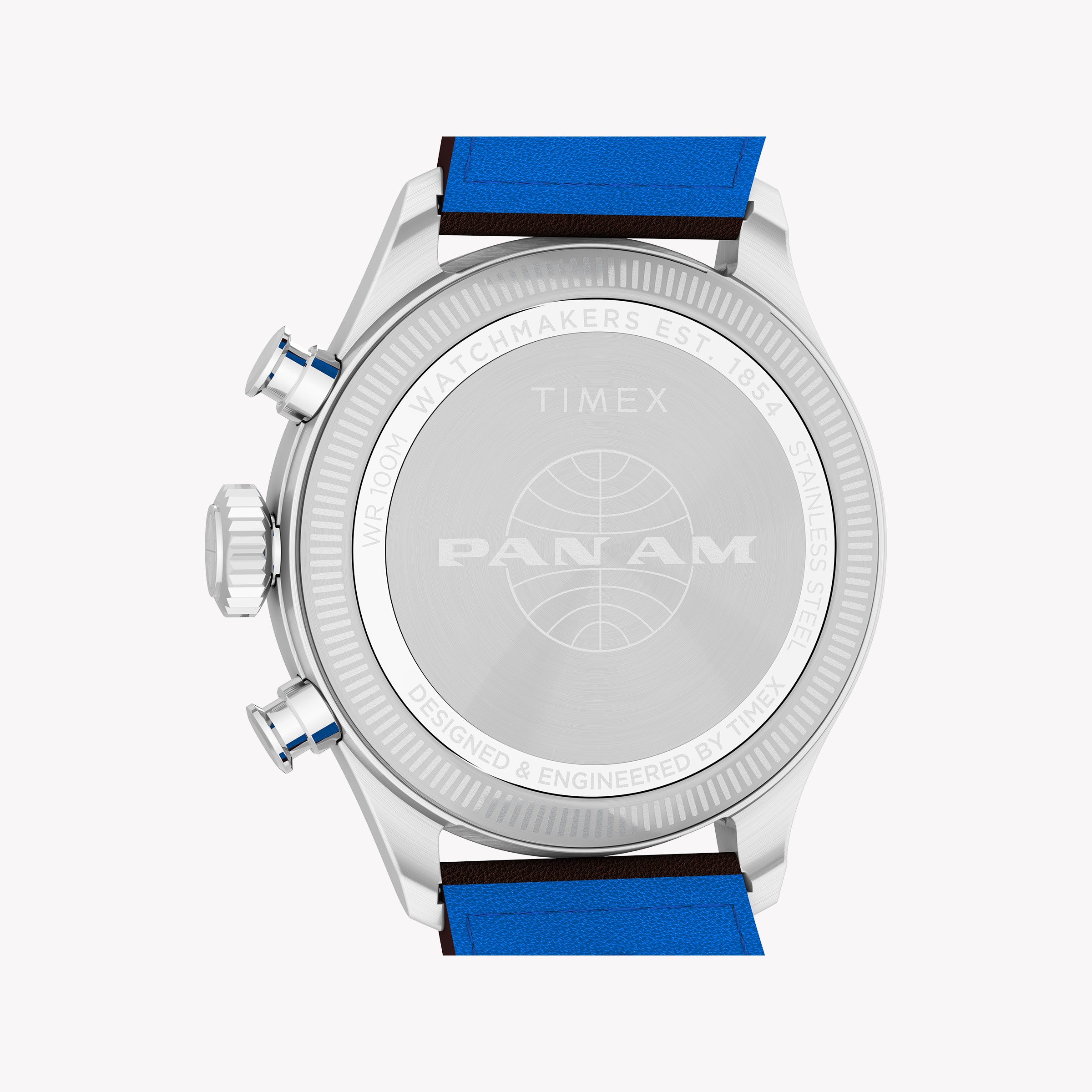 Authentic Pan Am Branding: The airplane motif appears both on the dial and on the sustainably tanned natural leather strap, creating a cohesive and iconic look that celebrates Pan Am's legendary legacy.