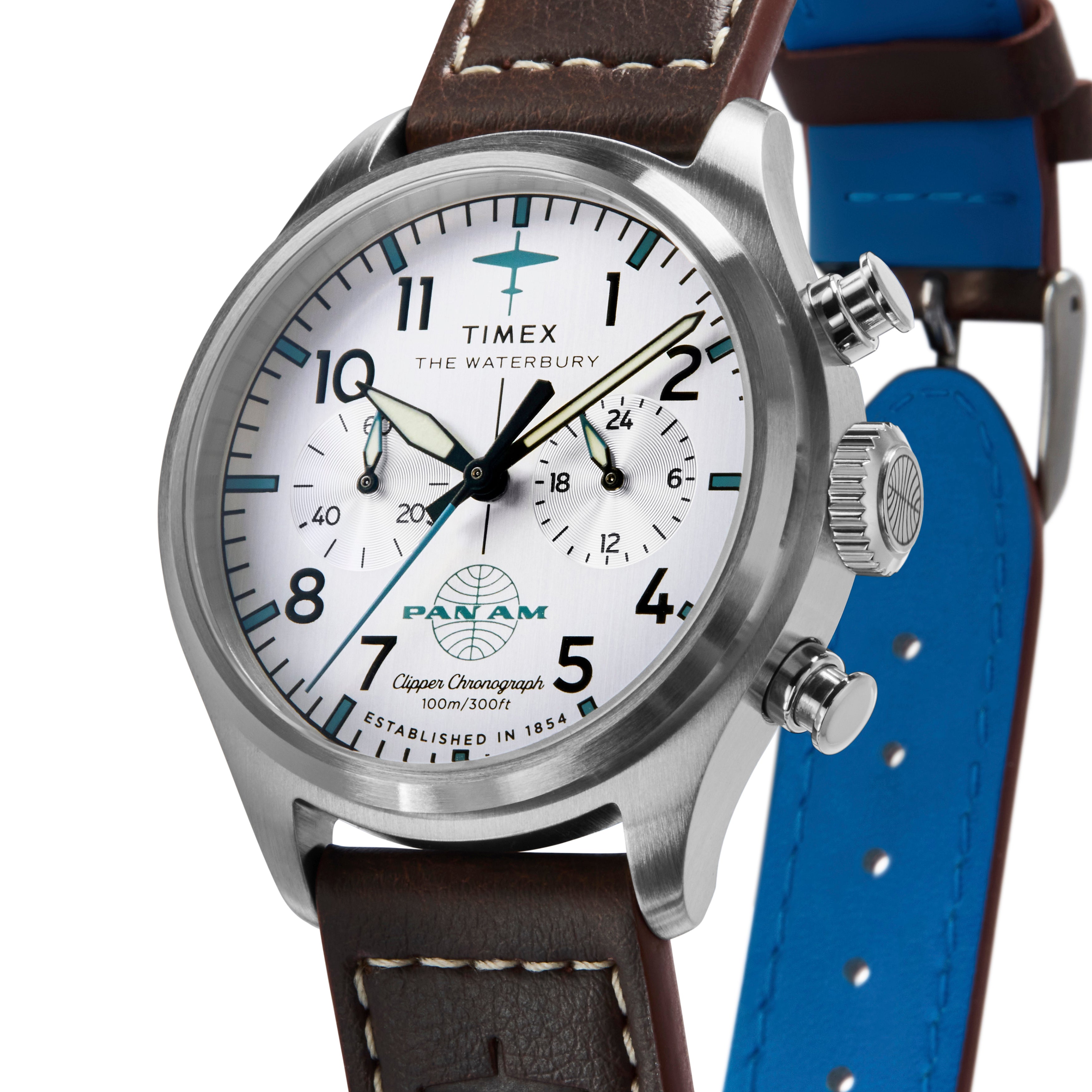 Waterbury ACE Pan Am S.E. Chrono SST Silver Dial Brown Leather Strap | TW2Y38700