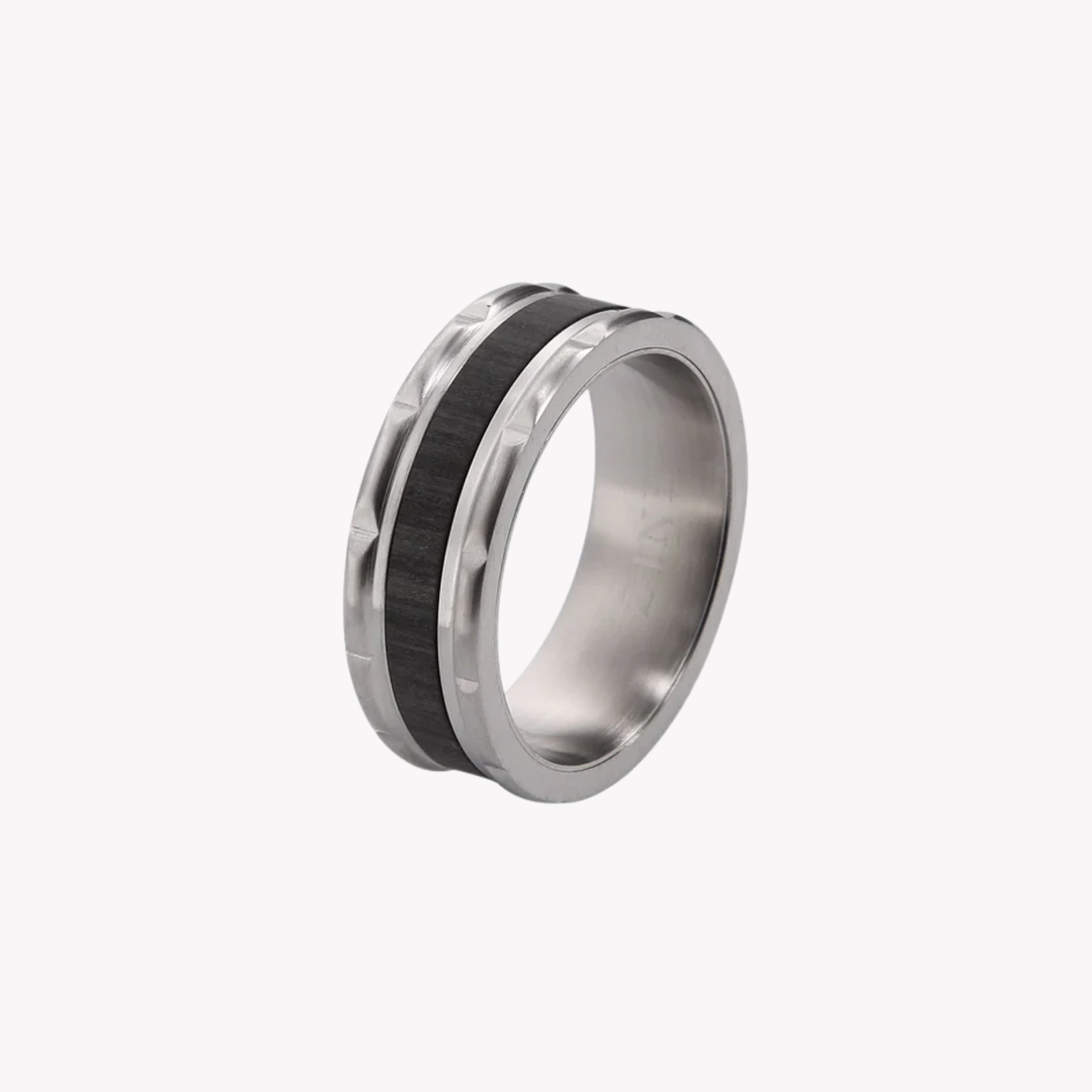 Zink Men's Silver & Black Stainless Steel Ring | Zjrg027m