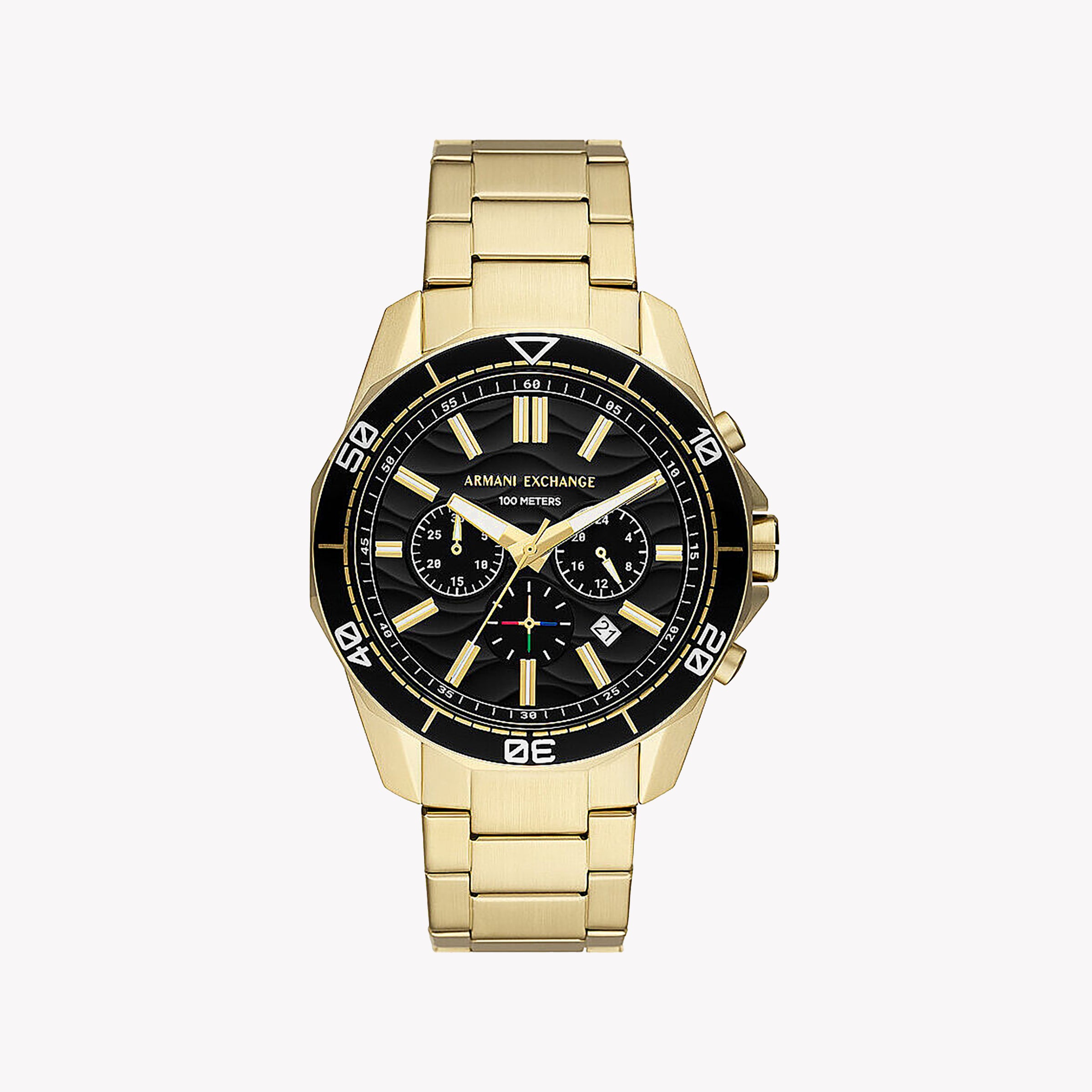 ARMANI EXCHANGE AX1958 – BOLD GOLD MASTERPIECE Herrenuhr mit Edelstahlarmband und schwarzem Zifferblatt