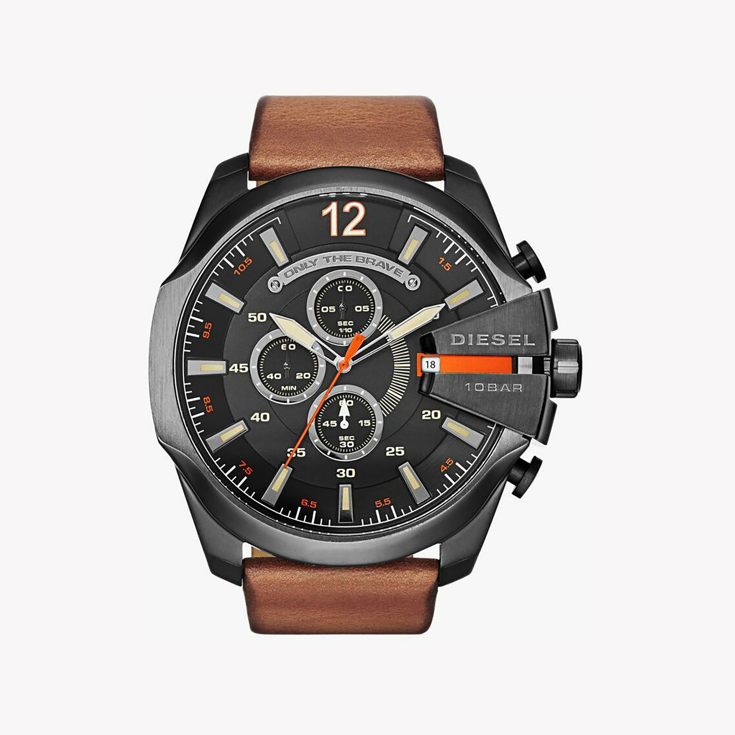 DIESEL DZ4343 BOLD PRESENCE – ROBUSTE HERRENUHR MIT SCHWARZEM ZIFFERBLATT UND BRAUNEM LEDERBAND