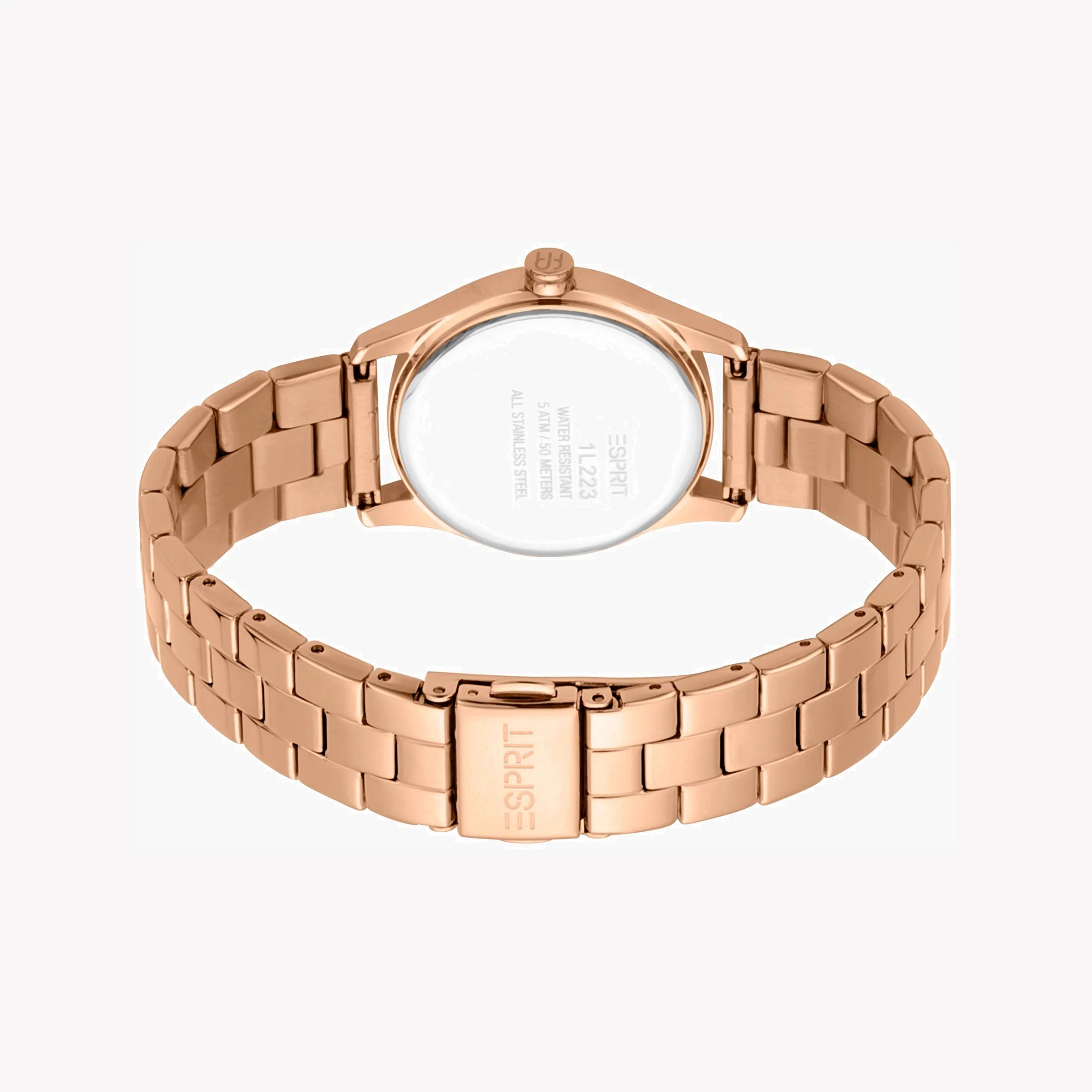 ESPRIT Damenuhr mit roségoldenem Edelstahlgehäuse und roségoldenem Edelstahlarmband