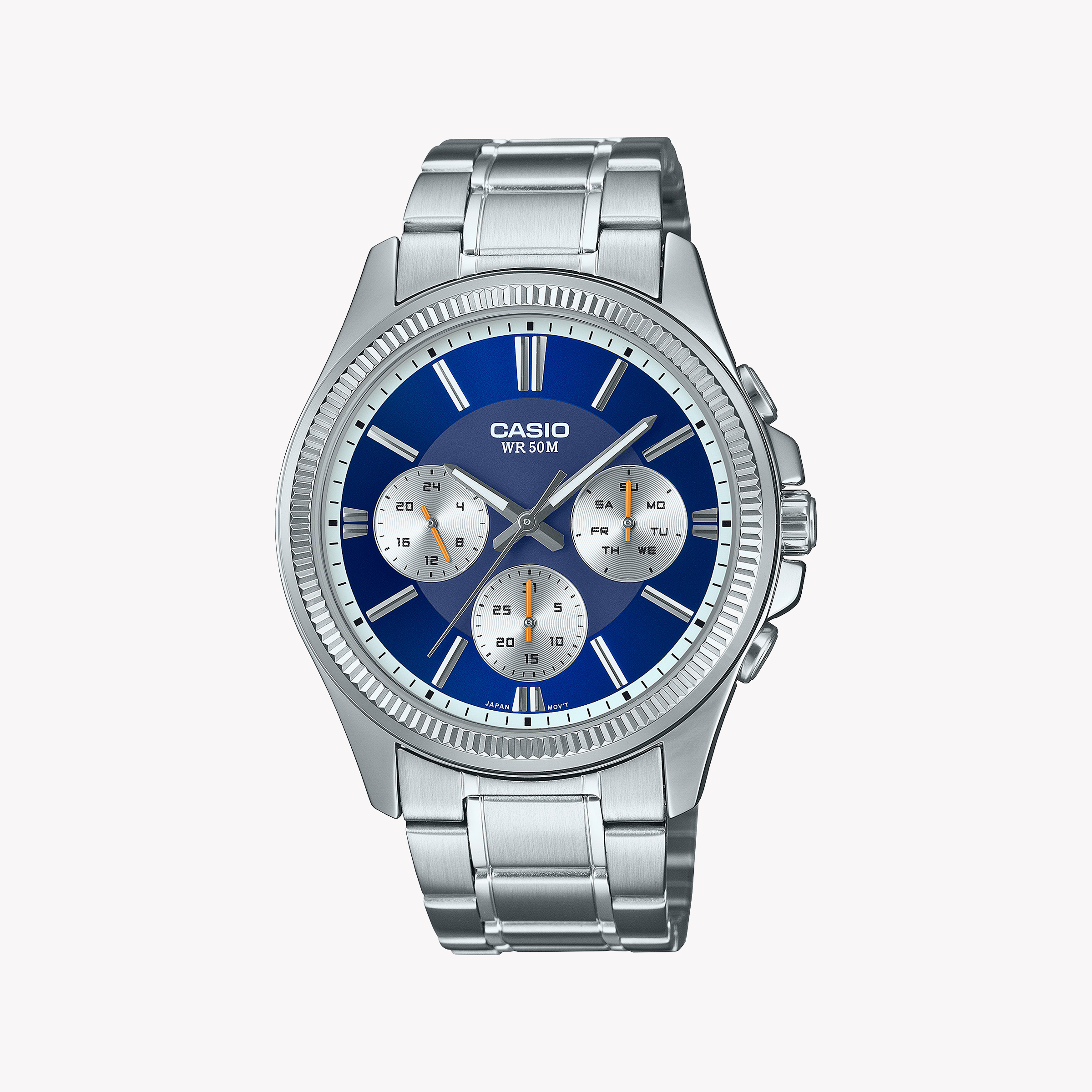 Casio Men's Silver/Blue, Stainless Steel | Mtp-1375d-2avdf