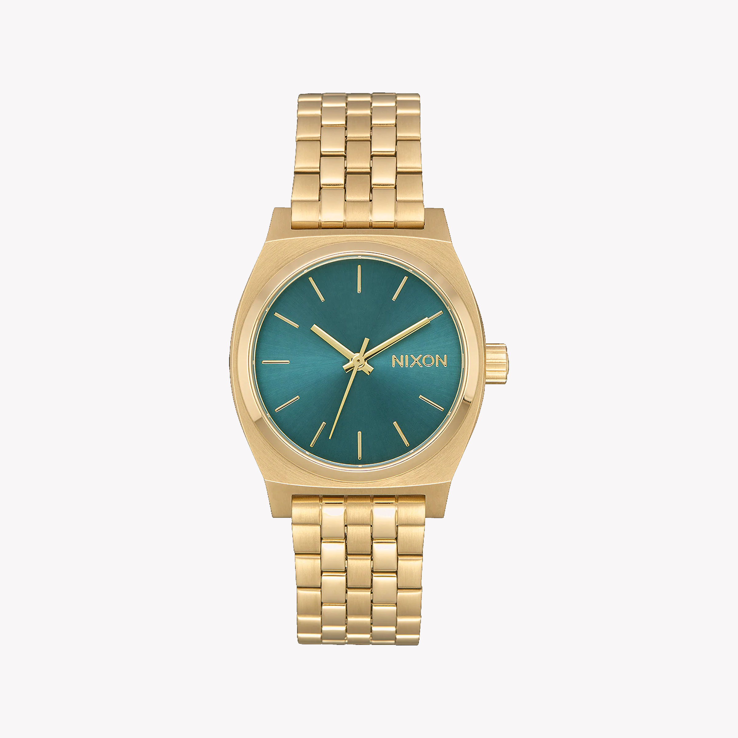 NIXON A1130-2626 – GOLDEN GLAMOUR – Damenuhr mit goldenem Edelstahlarmband und leuchtend grünem Zifferblatt