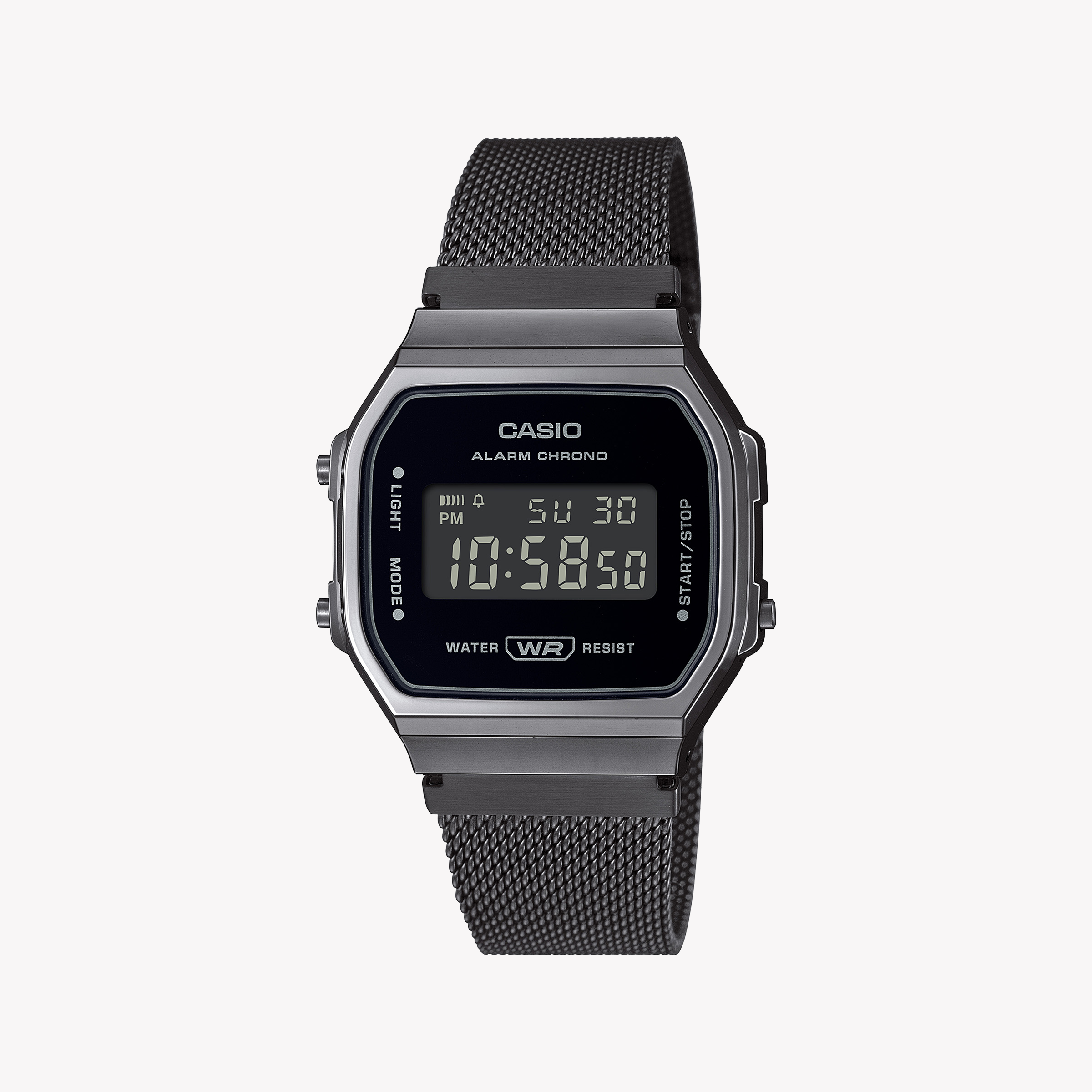 Die Casio A168WEMB-1BDF ist das ultimative Accessoire für diejenigen, die sowohl Praktikabilität als auch Stil schätzen. Mit einem eleganten Gehäuse aus schwarzem Resin und einem auffälligen schwarzen Edelstahlband ergänzt diese Uhr mühelos jeden Look und ist perfekt für jede Gelegenheit, von Tag bis Nacht.