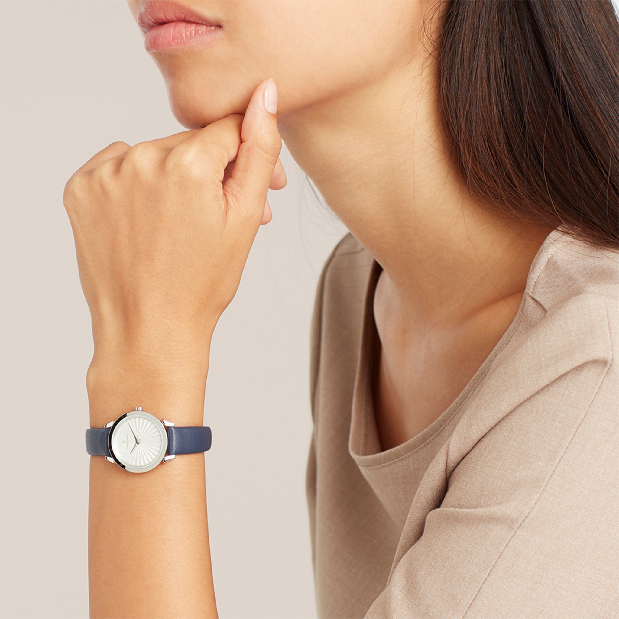 Eine stilvolle und luxuriös aussehende Uhr, die Pierre Cardin Uhr mit einem runden Gehäuse aus Edelstahl in Silber verfügt über ein blaues Lederarmband und ein silbernes Zifferblatt. Mit einem Gehäusedurchmesser von 27 mm wird sie eine großartige Ergänzung zu Ihrem Outfit sein.