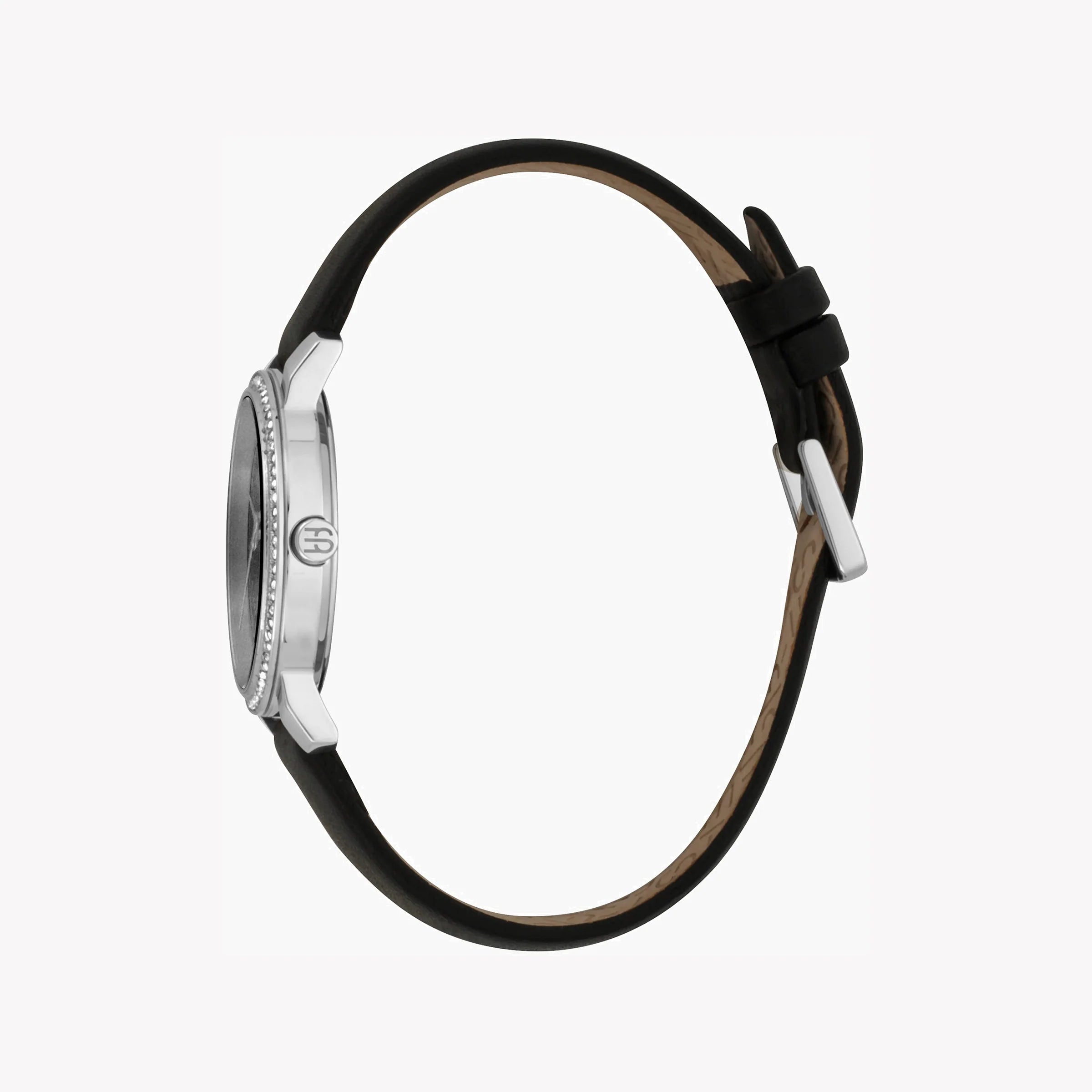ESPRIT Damenuhr mit silbernem Edelstahlgehäuse und schwarzem Lederarmband