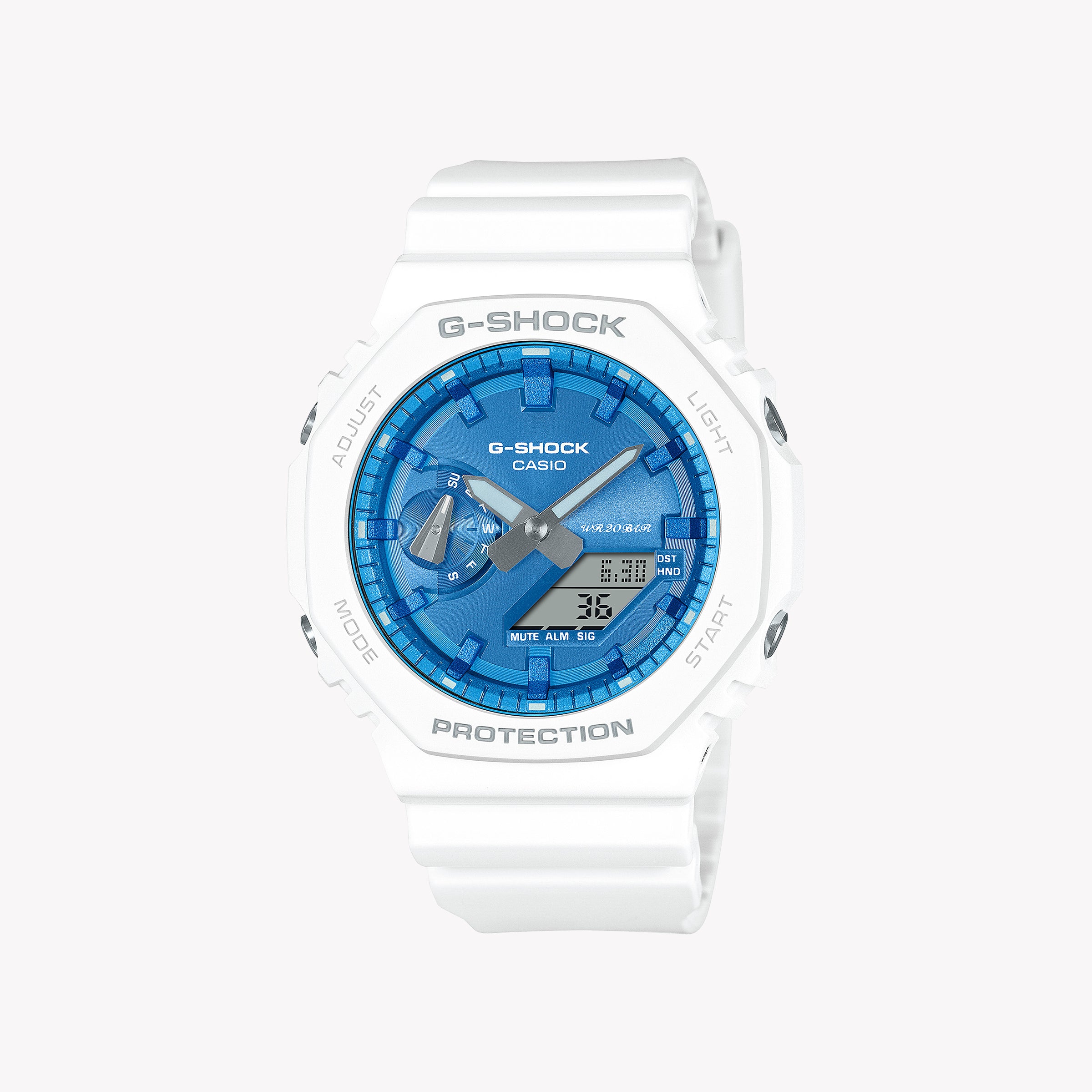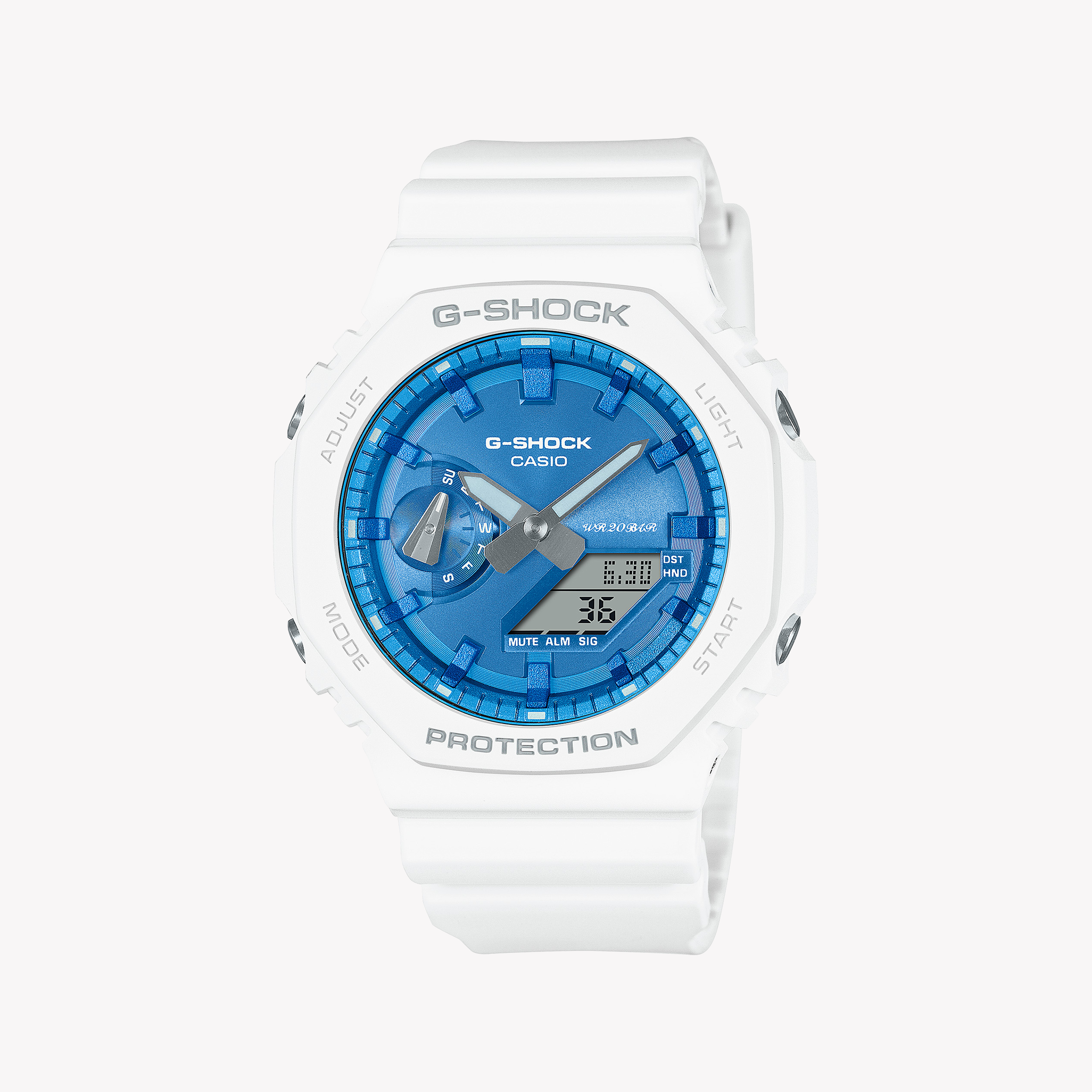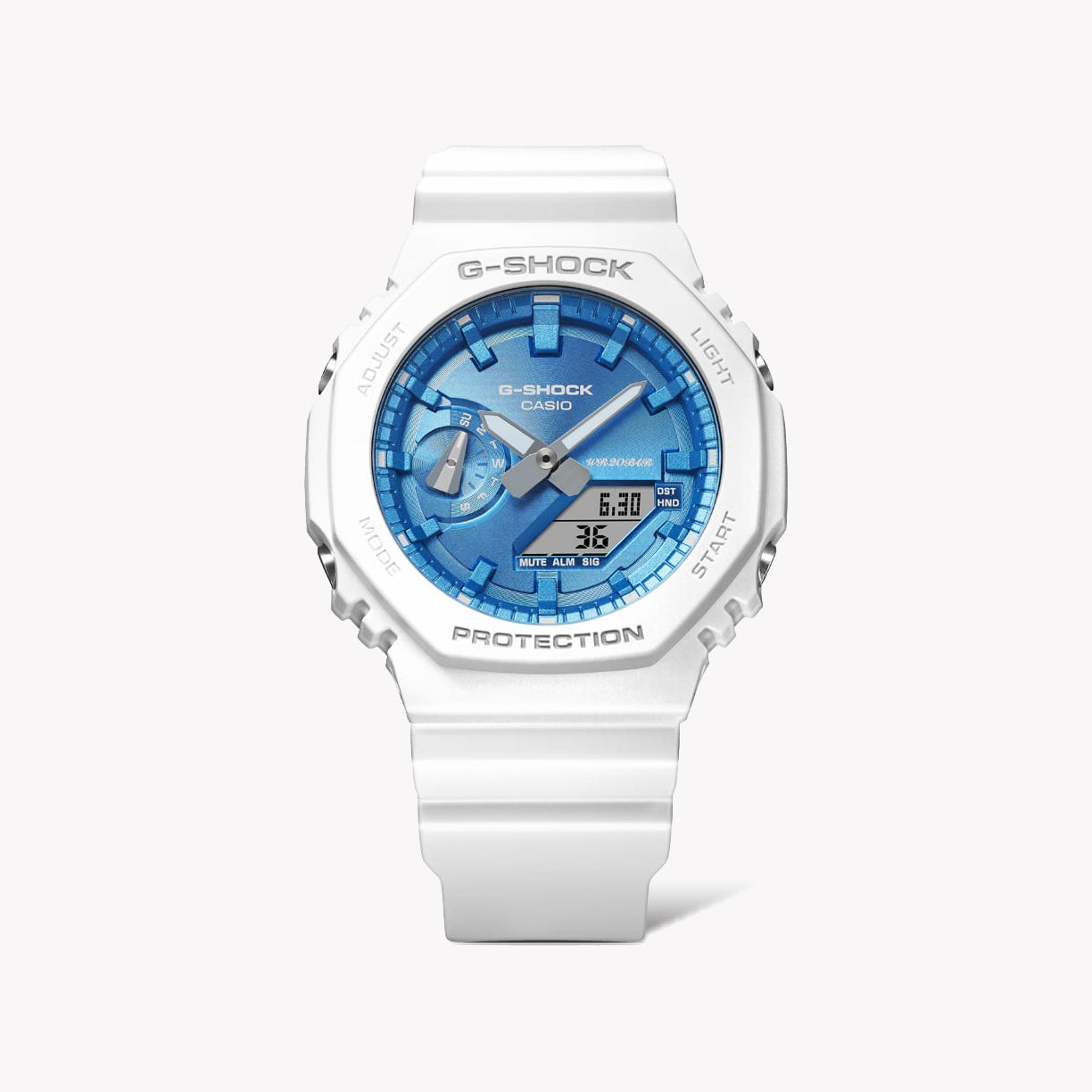 CASIO G-SHOCK GA-2100WS-7AER – HERRENUHR IM ABENTEUERBEREIT-STIL MIT WEISSEM BAND UND BLAUEM ZIFFERBLATT