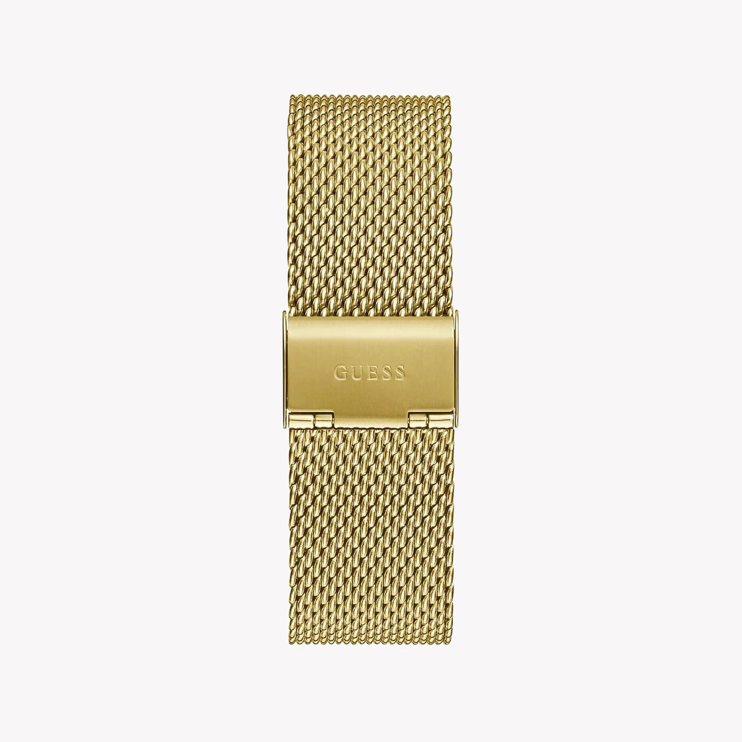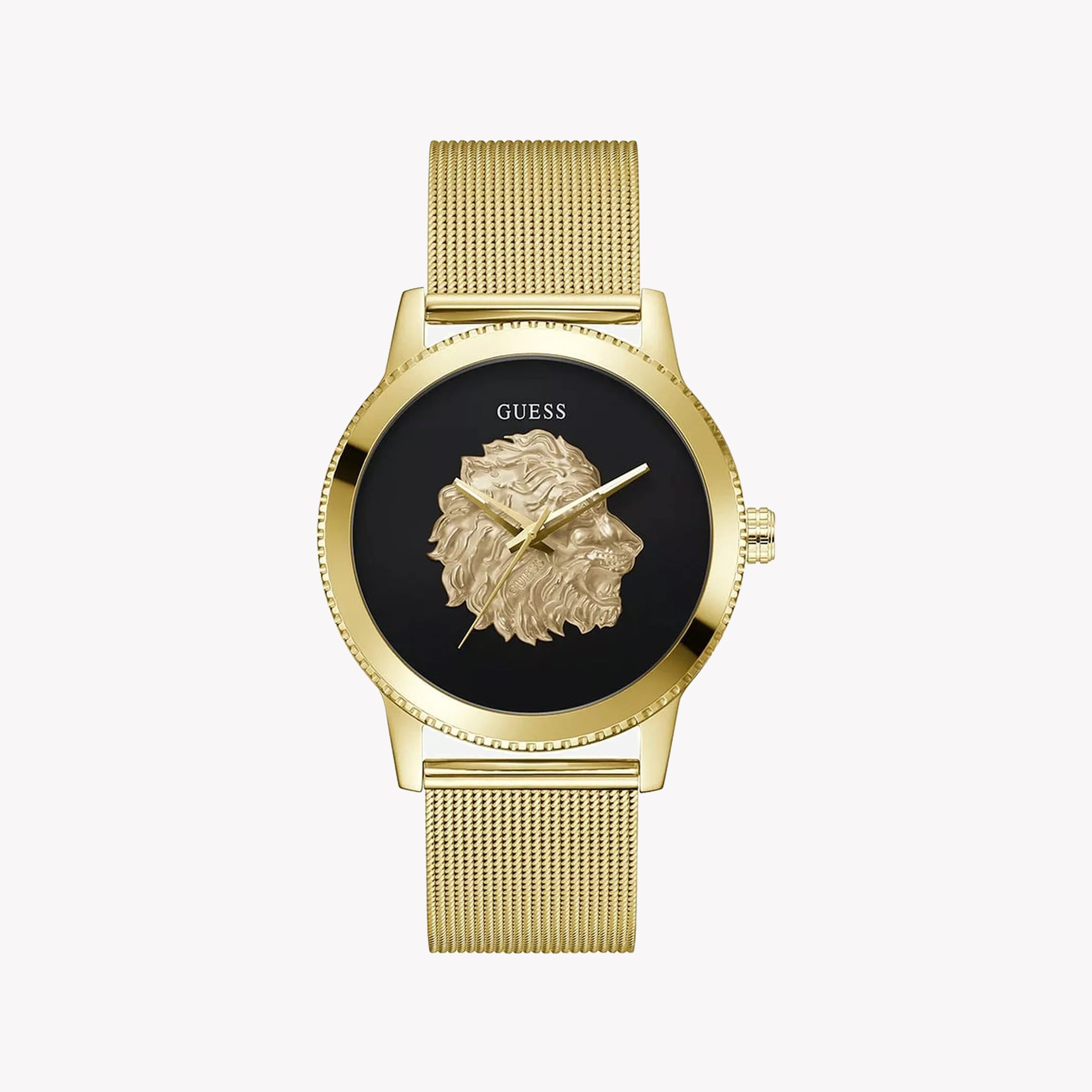 GUESS GW0702G1 GOLDEN TIMEPIECE – mutige Eleganz Unisex-Uhr mit auffälligem schwarzem Zifferblatt und Edelstahlarmband