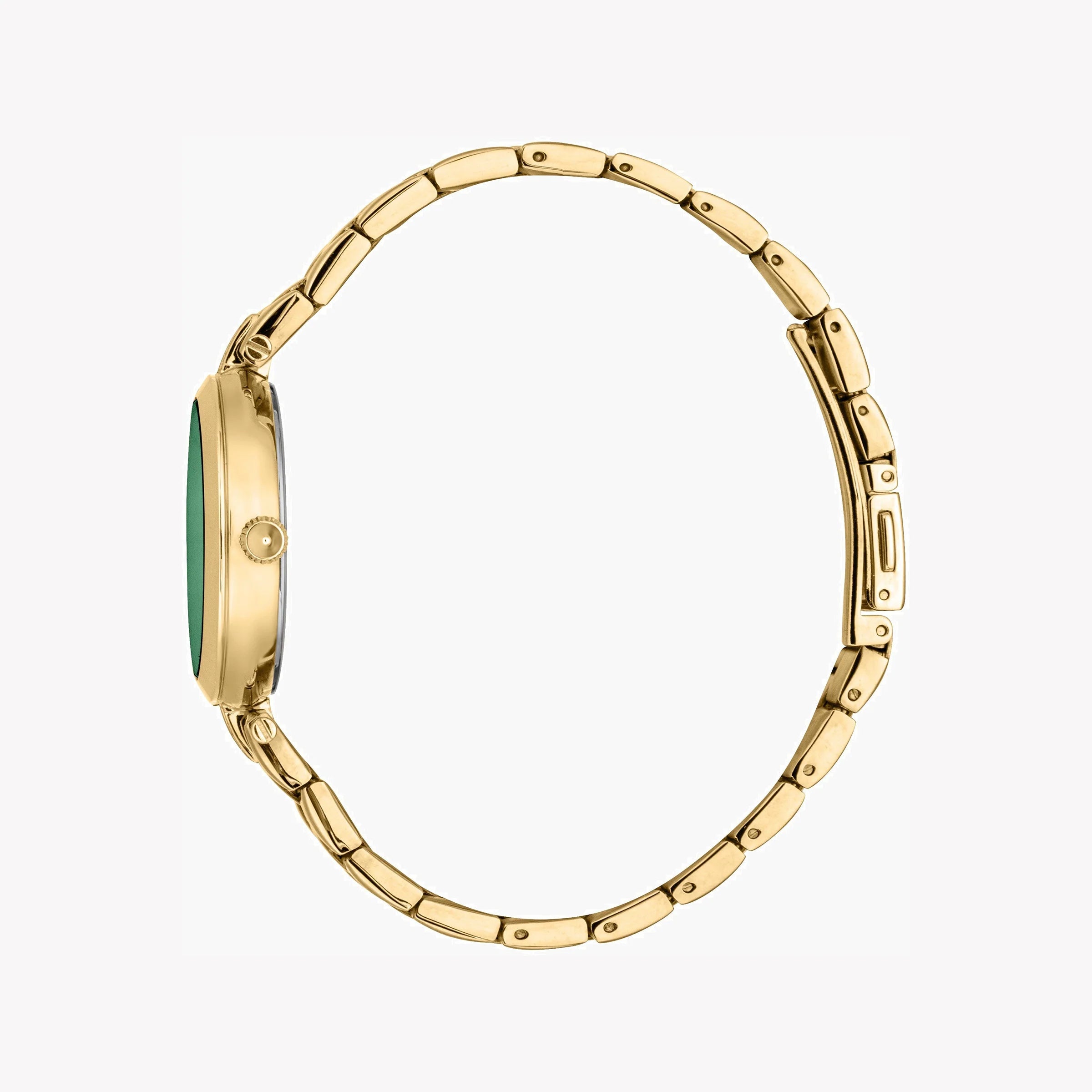 Zeitlos, anspruchsvoll, elegant. Diese Just Cavalli Damenarmbanduhr vereint alles. Vom goldenen Edelstahlband bis zum runden goldenen Edelstahlgehäuse mit einem Durchmesser von 32 mm und natürlich dem eleganten grünen Zifferblatt, ist diese Uhr die perfekte Darstellung ultimativer Sophistication.