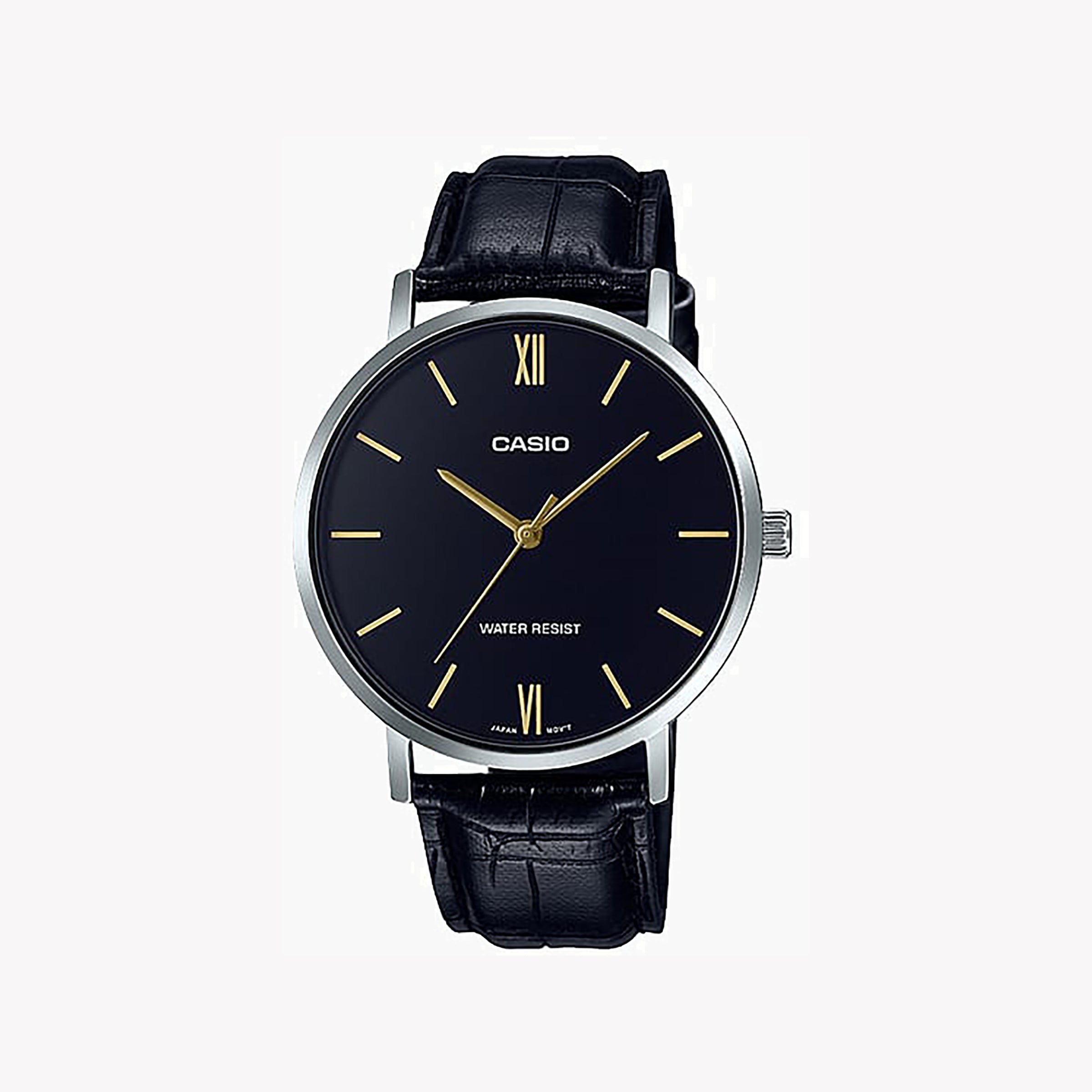 CASIO MTP-VT01L-1BUDF BLACK ELEGANCE – STILVOLLE HERRENUHR MIT LEDERARMBAND UND WASSERBESTÄNDIGKEIT
