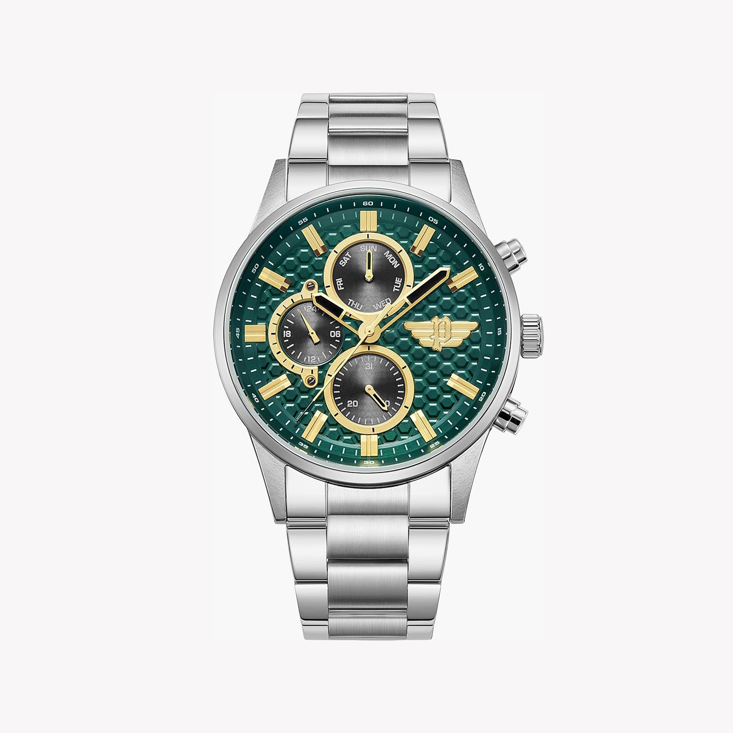 - Auffällige Ästhetik: Mit einem eleganten 45 mm Edelstahlgehäuse und einem auffälligen grünen Zifferblatt zieht diese Uhr mit ihrer einzigartigen Farbe und den polierten silbernen Akzenten alle Blicke auf sich und ist ein herausragendes Accessoire in jeder Garderobe.