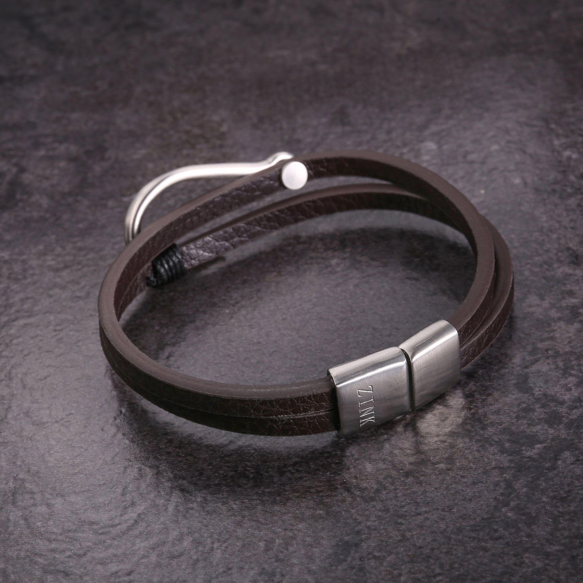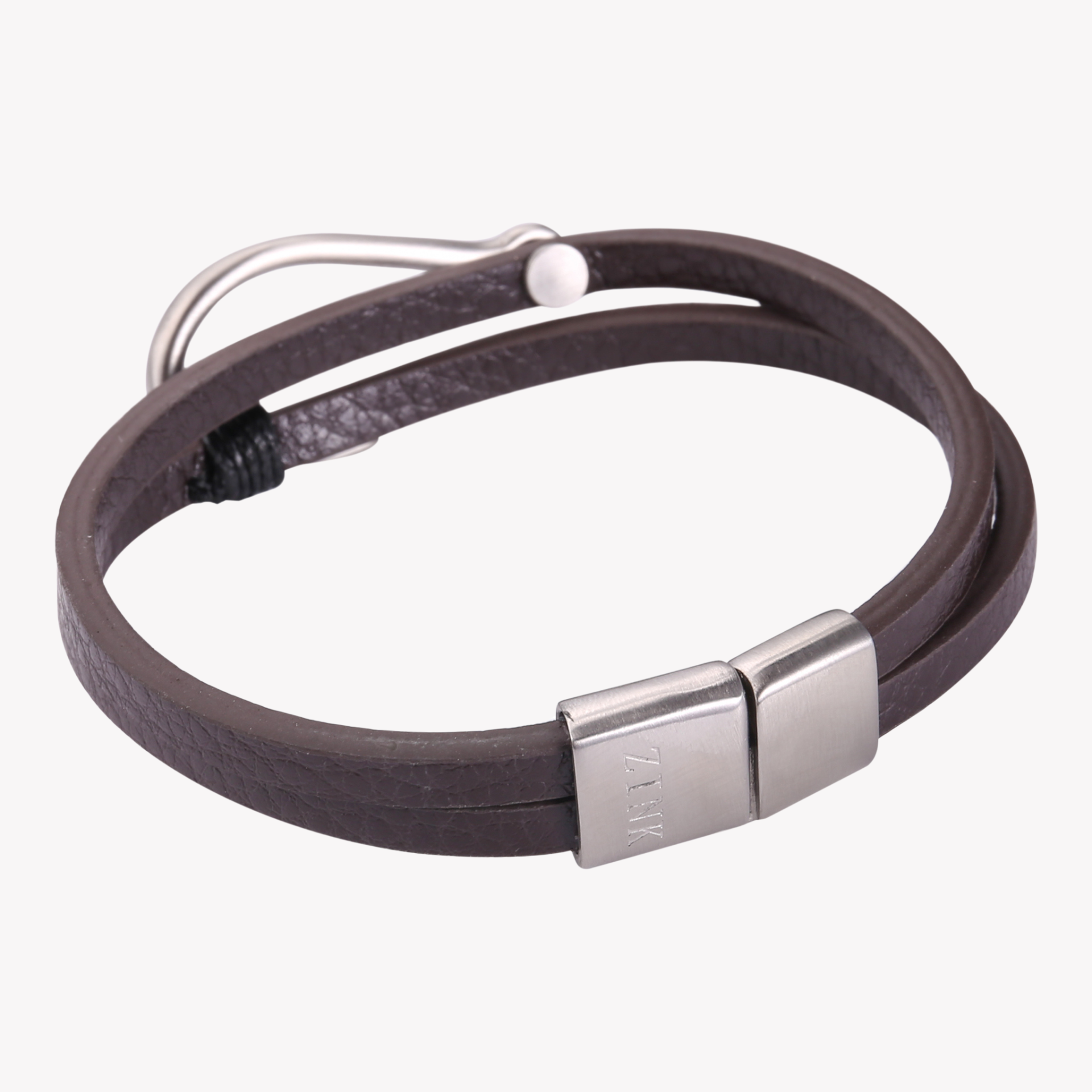 Zink Men's Brown & Silver Stainless Steel & Leather Bracelet | Zjbc04010