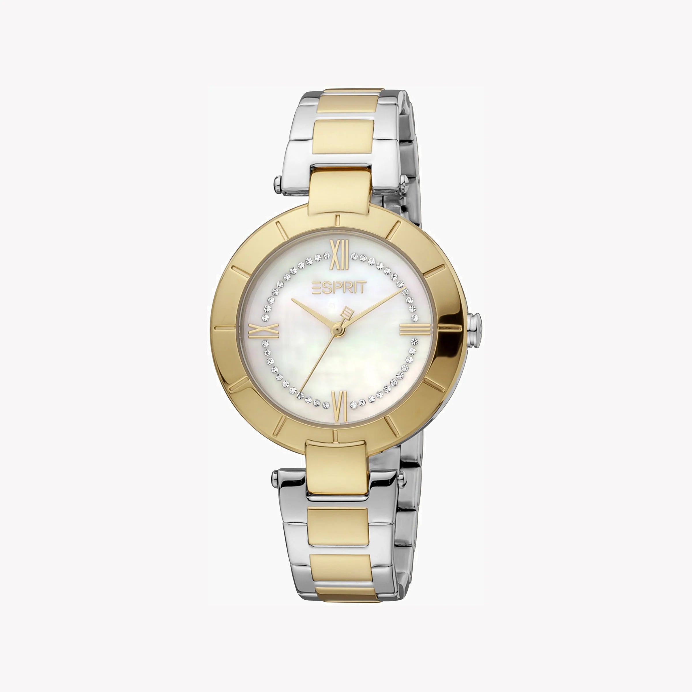 ESPRIT Damenuhr mit silbernem Edelstahlgehäuse und silbernem und goldenem Edelstahlarmband