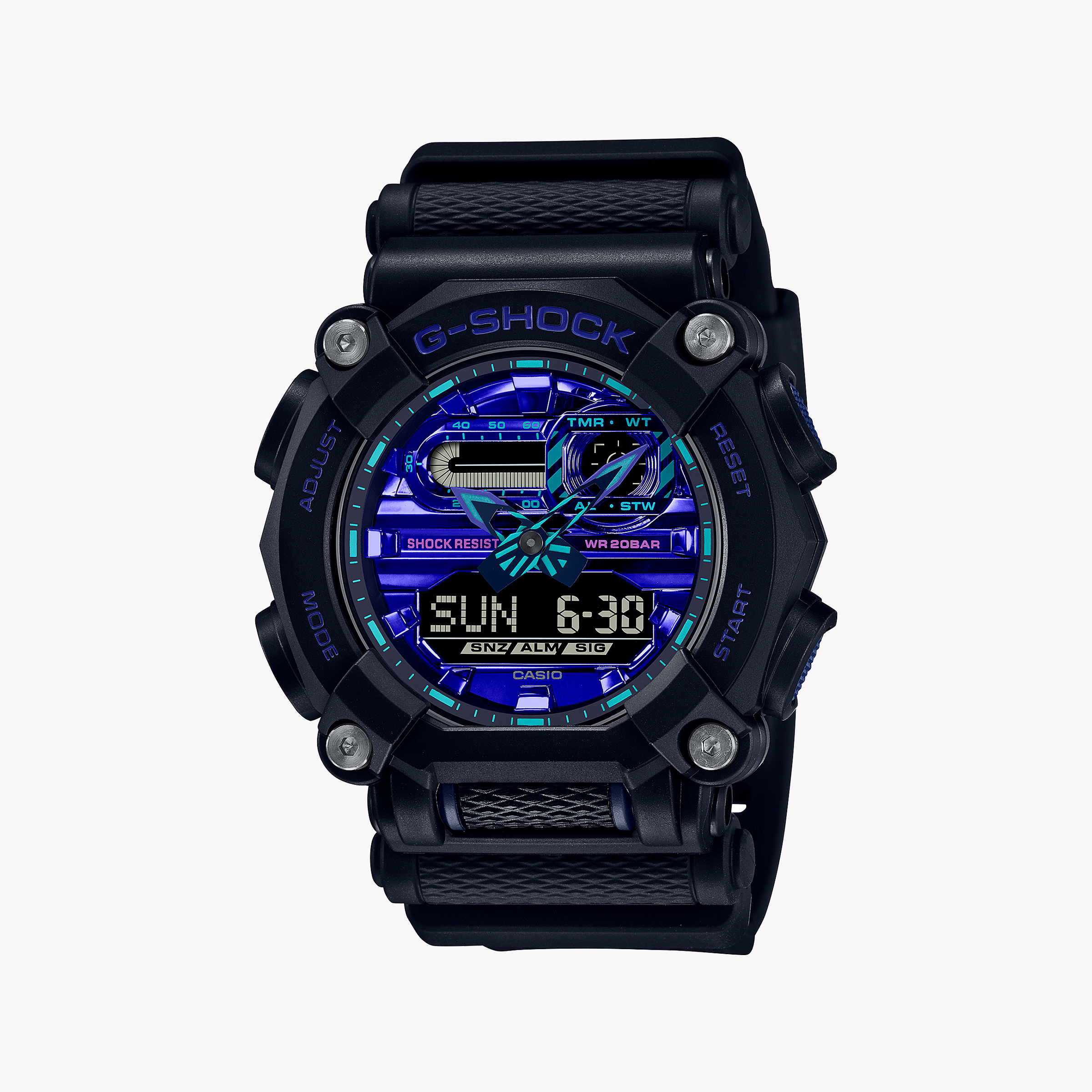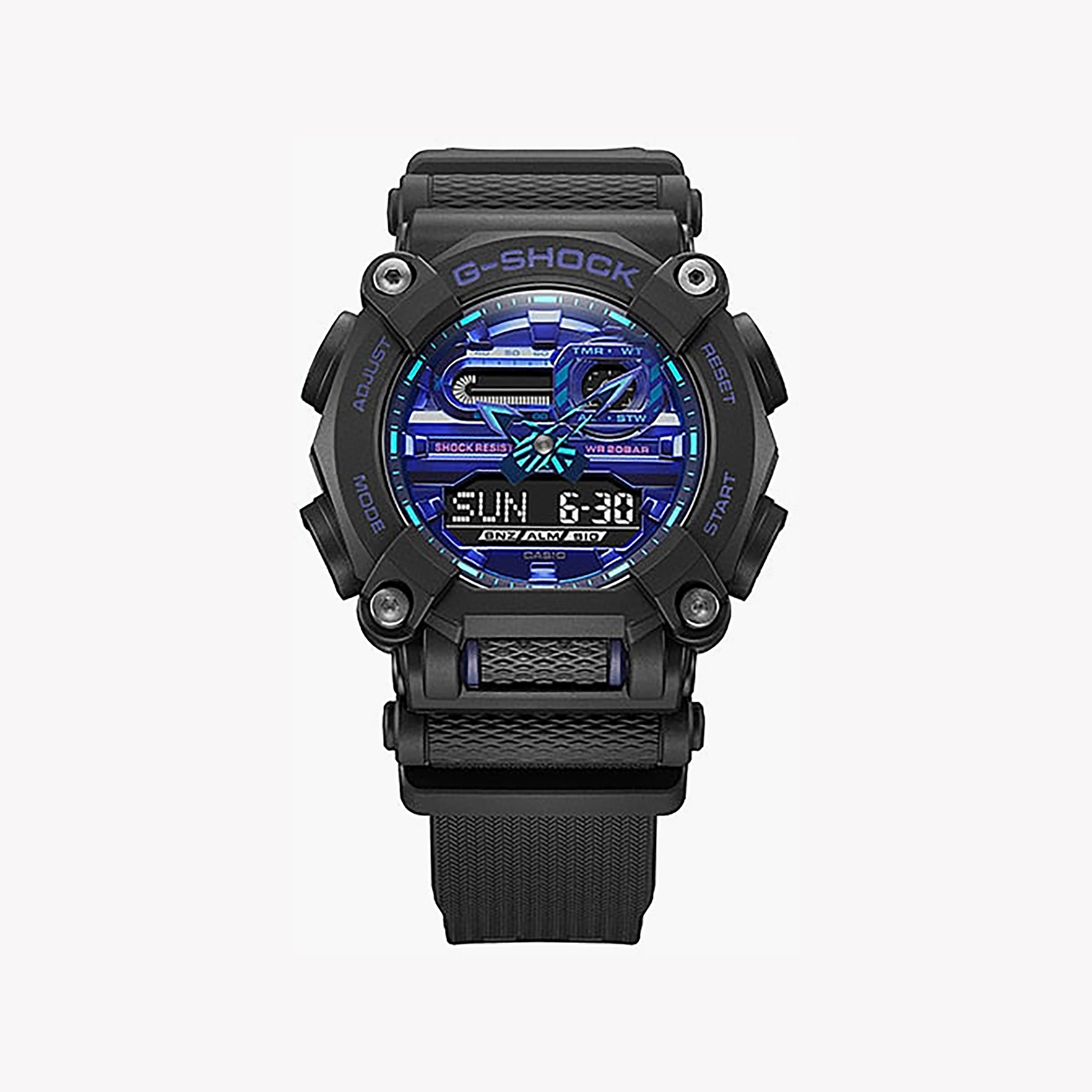 CASIO G-SHOCK GA-900VB-1ADR – mutige Abenteurer-Herrenuhr mit leuchtend blauem Zifferblatt und schwarzem Kunstharzarmband