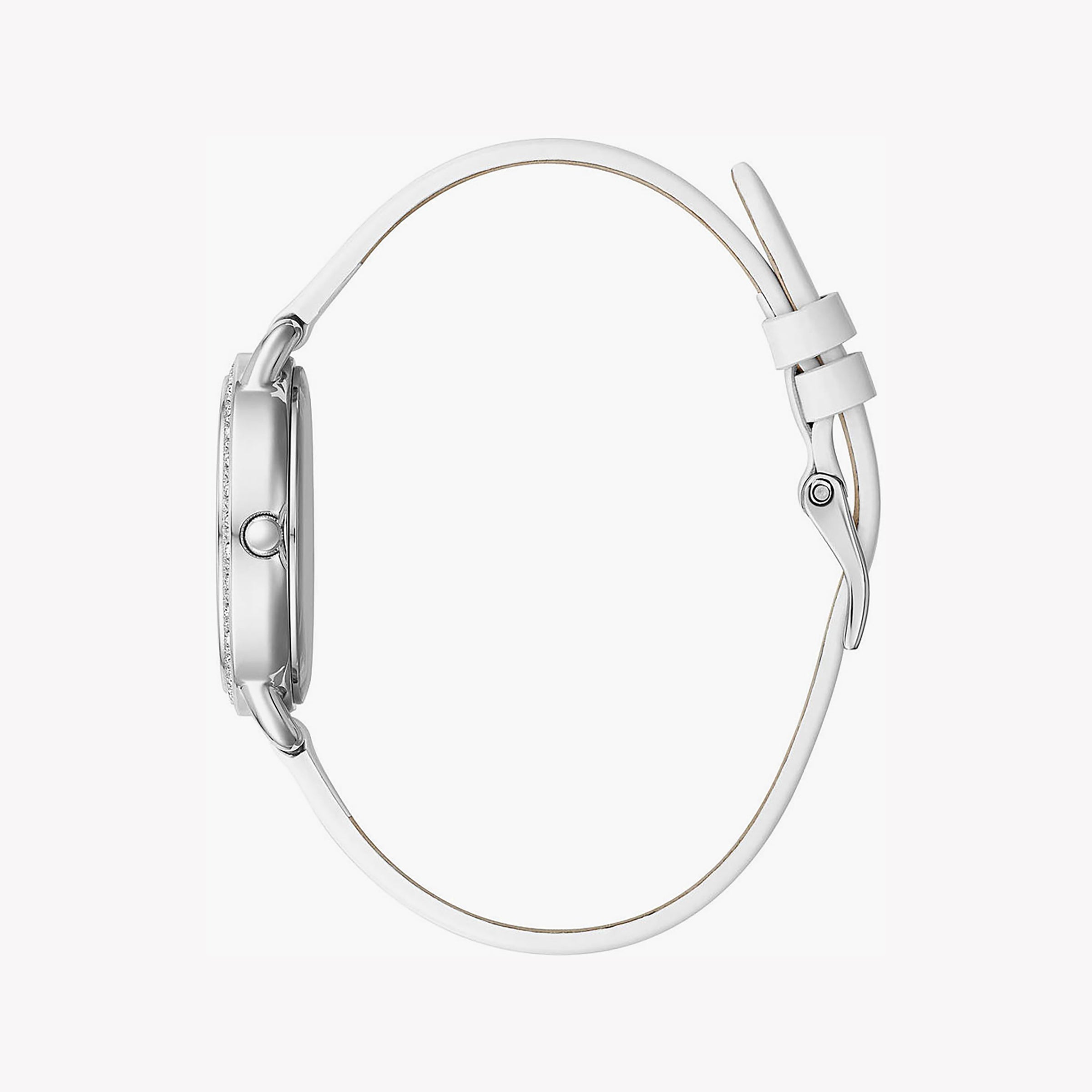 GUESS GW0099L1 – ELEGANT ZEITLOSE DAMENUHR mit elegantem silbernem Zifferblatt und weißem Lederarmband