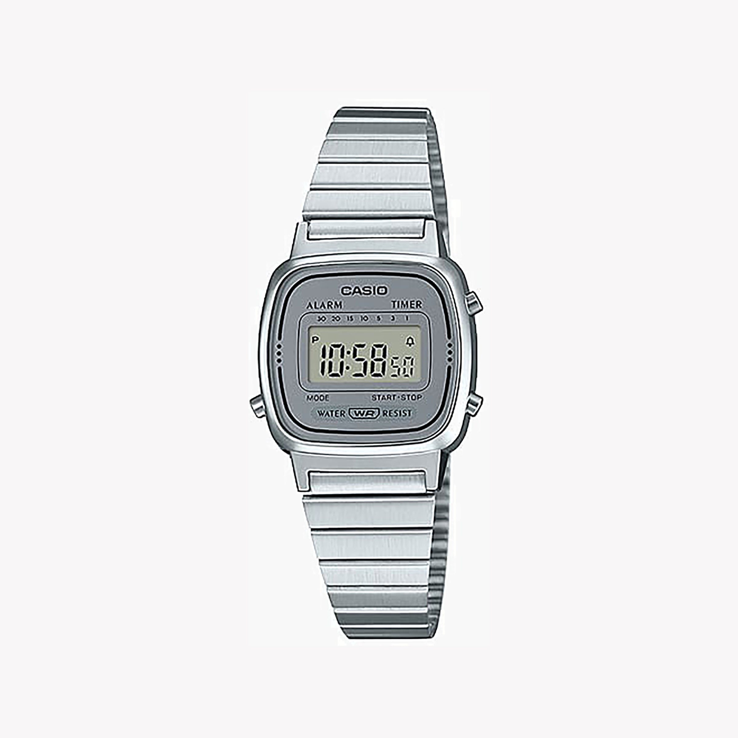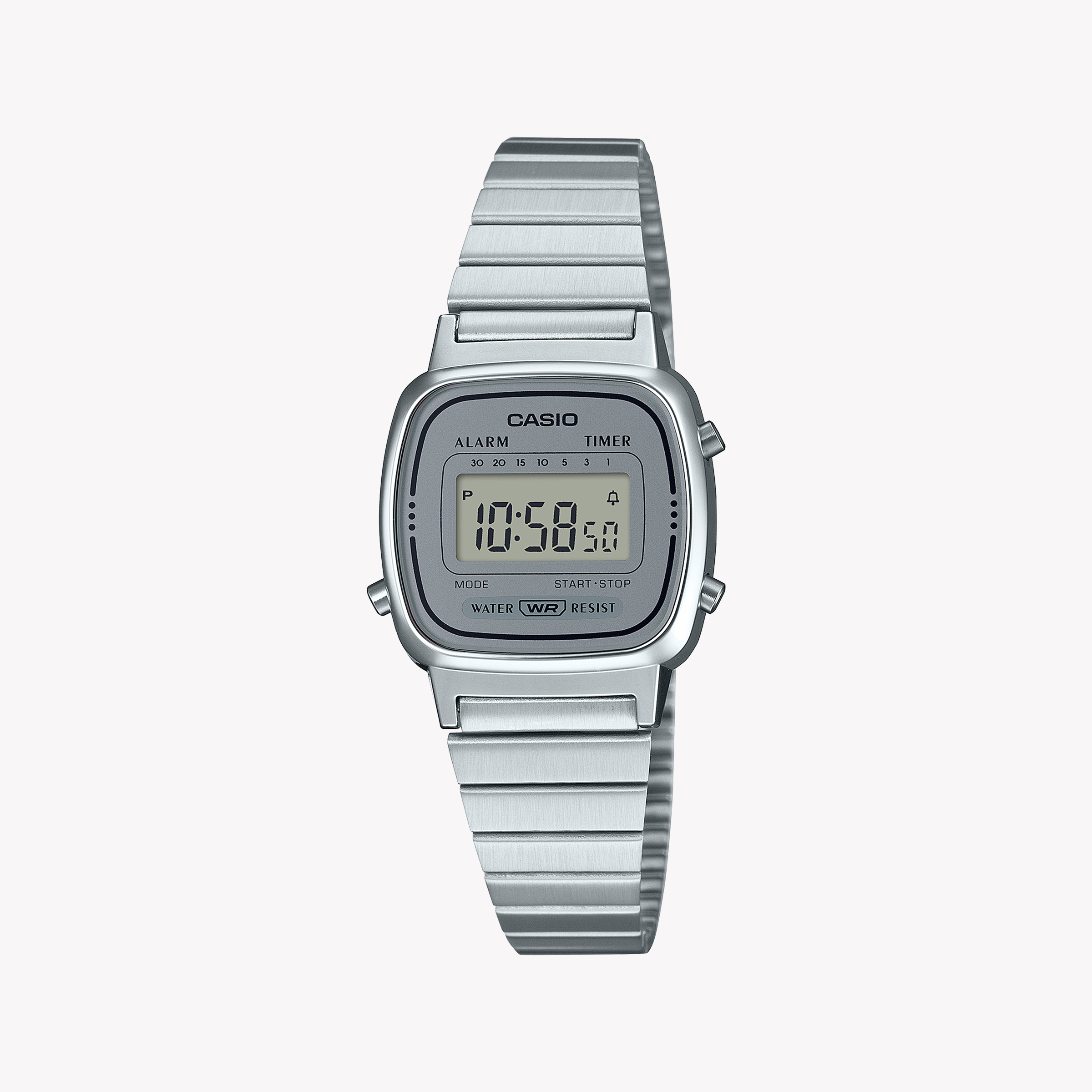 CASIO LA670WA-7DF RETRO ELEGANCE – SPORTLICHE RAFFINIERTE Damenuhr mit schlanker Digitalanzeige und Edelstahlarmband.